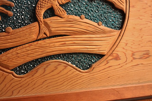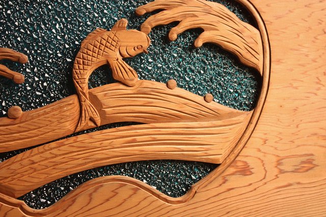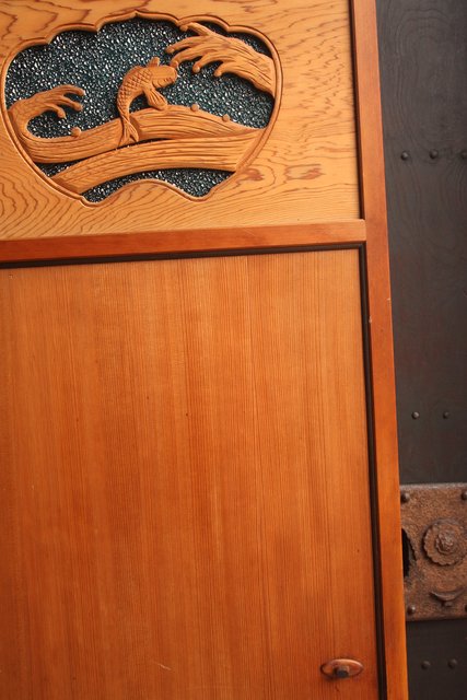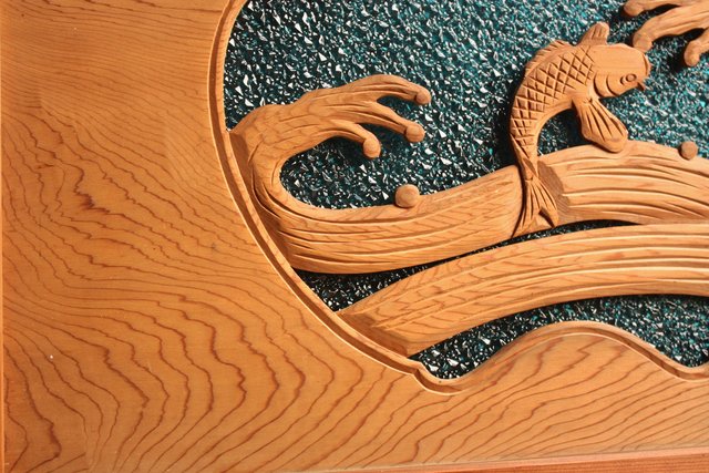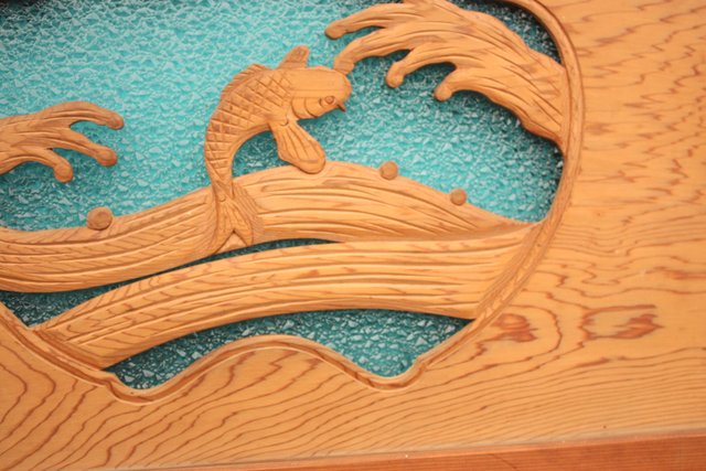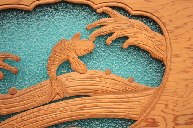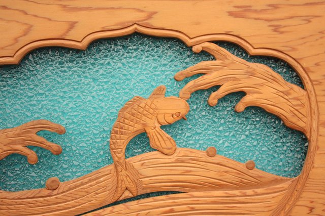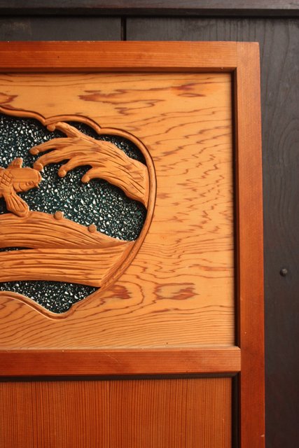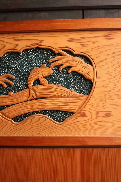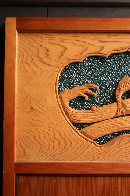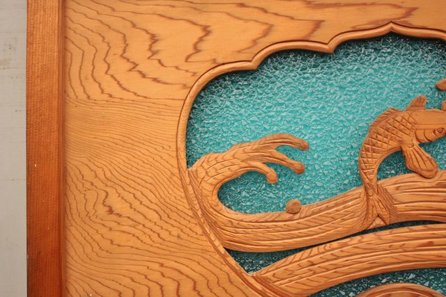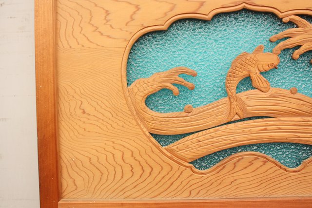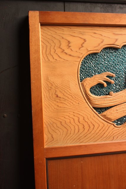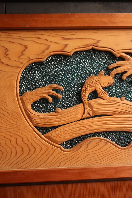 鯉と荒波 水色ダイアガラス建具 GD358
