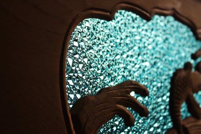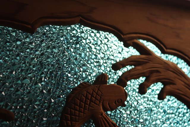 水を表現したかったのか ぴったりの色硝子です