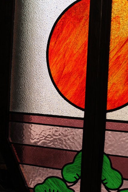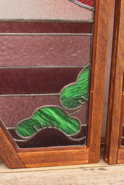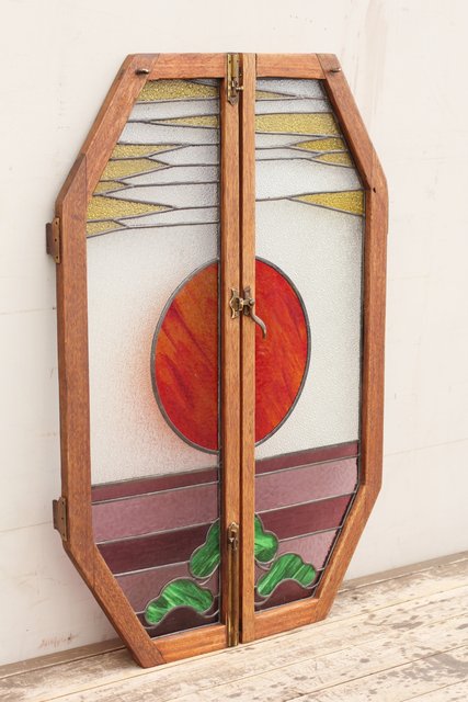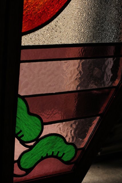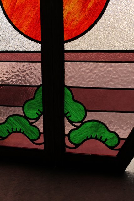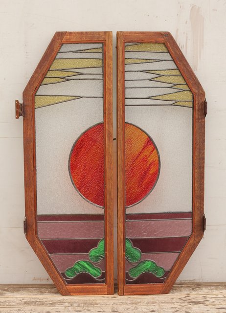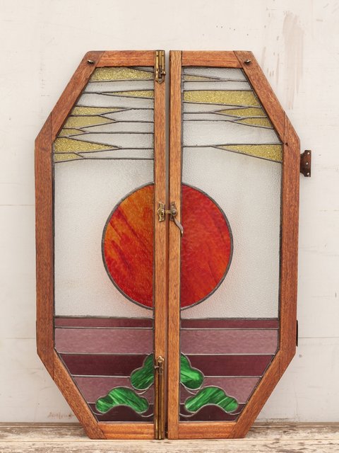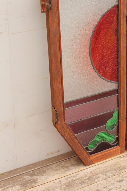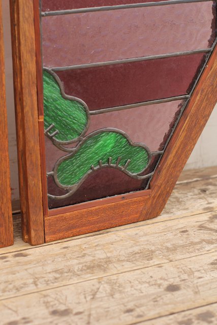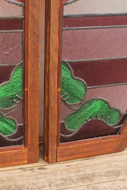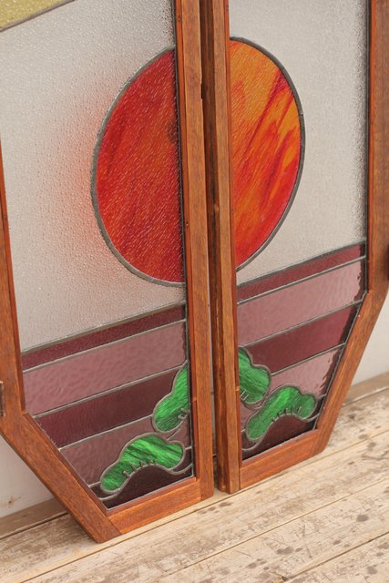 夕日に松 ステンドガラス窓1対 GD515
