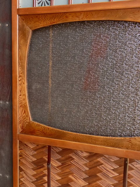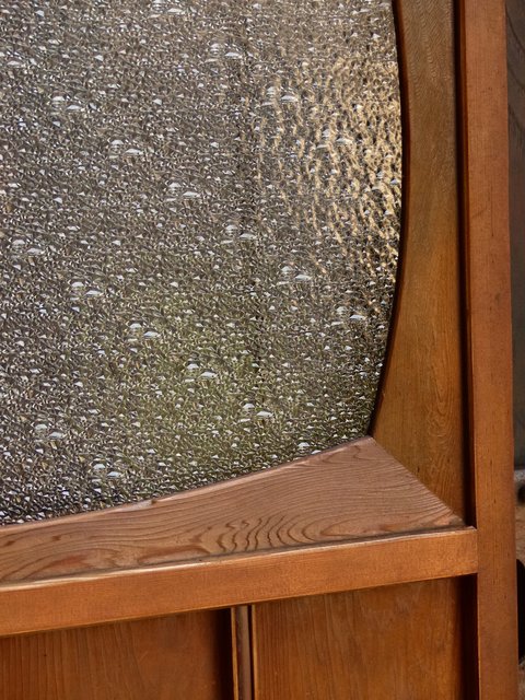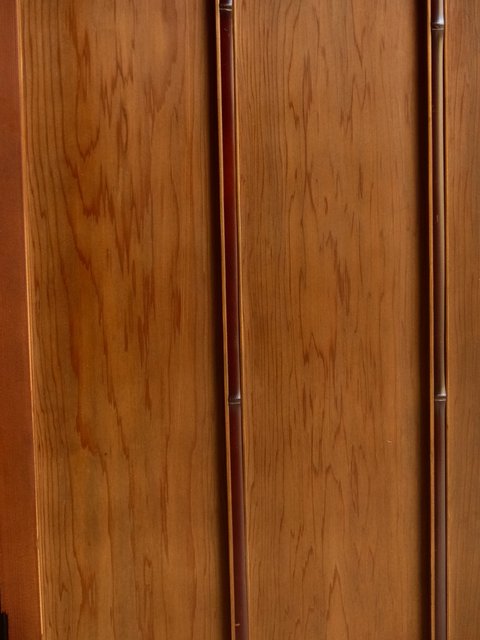 大きなダイアガラスの枠は屋久杉でしょうか 細かい目が魅力です