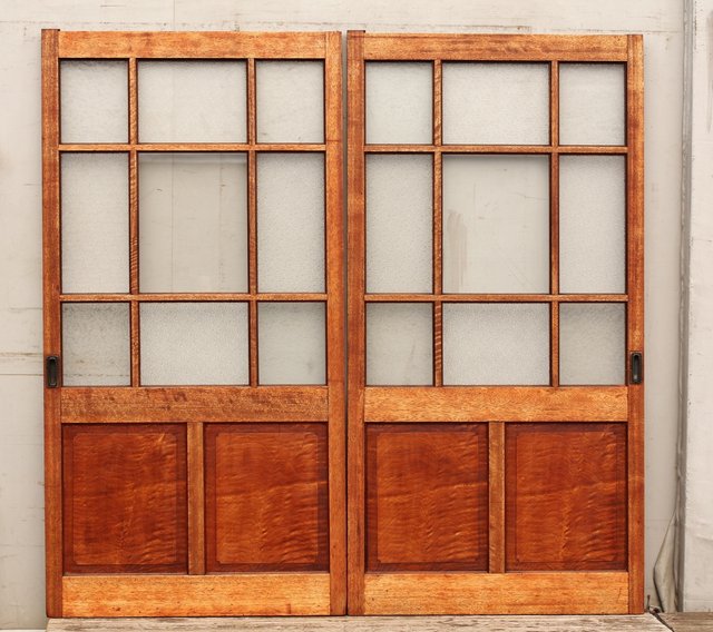 縮杢尽くしの豪華玄関硝子戸2枚1組 GD529