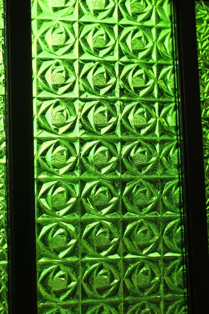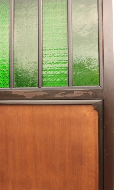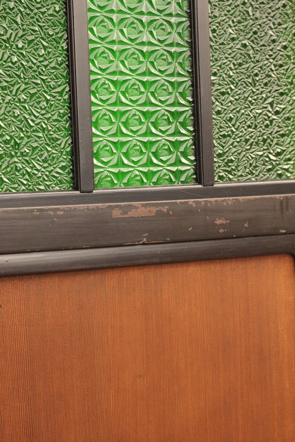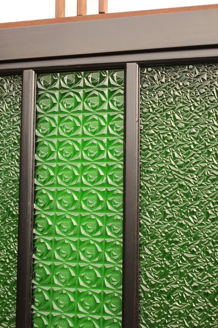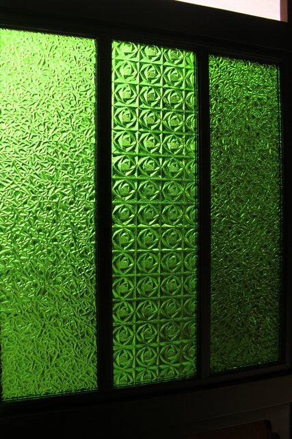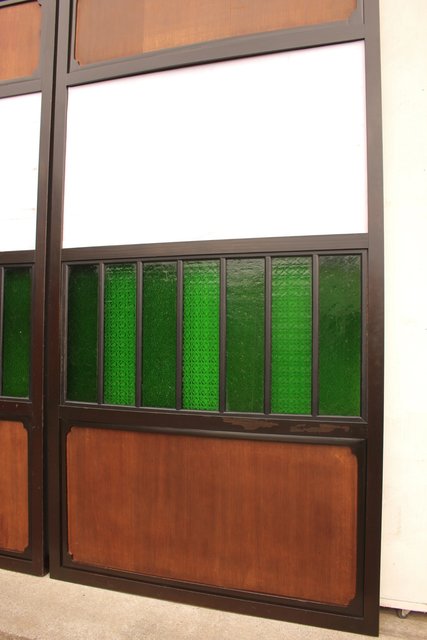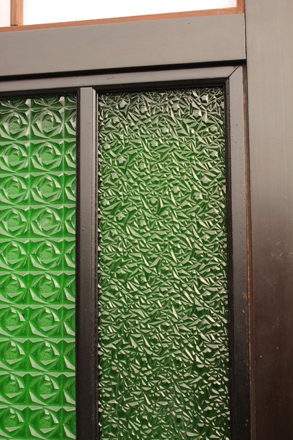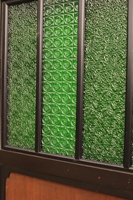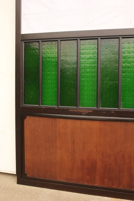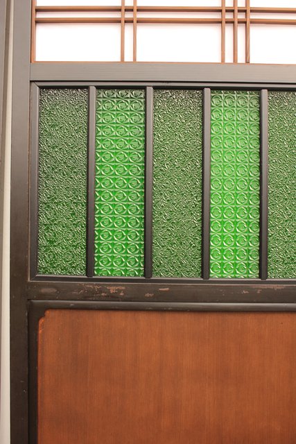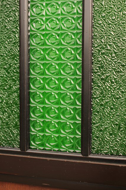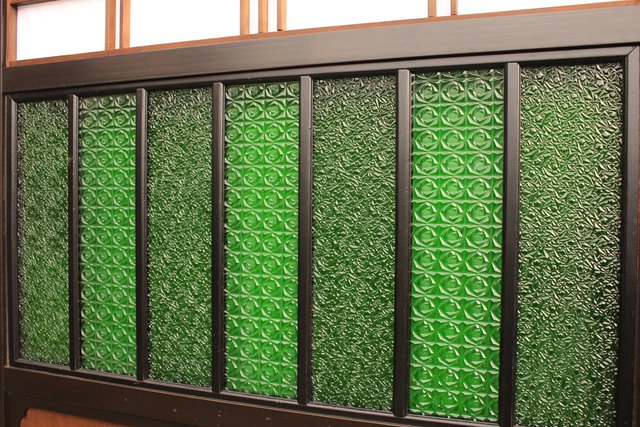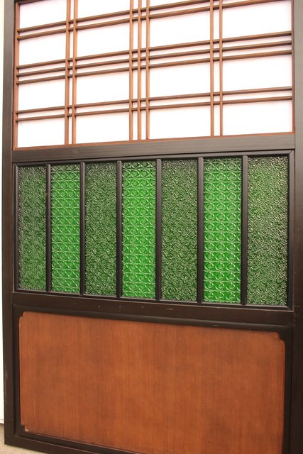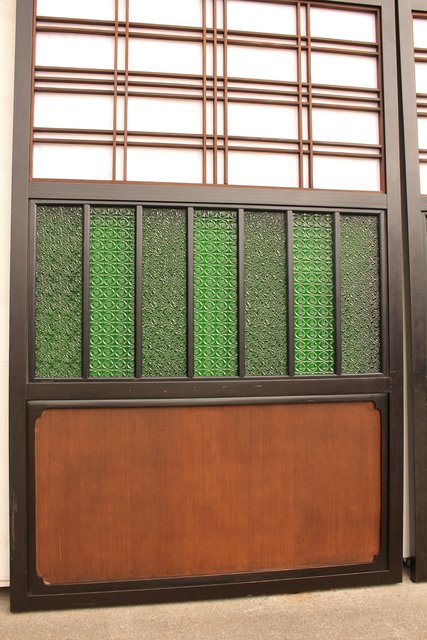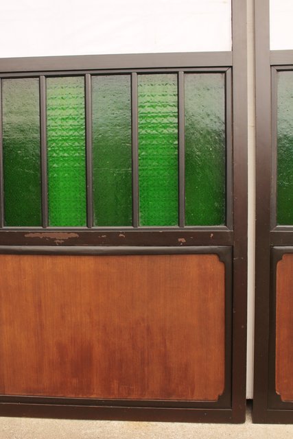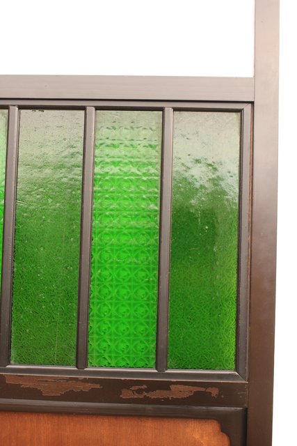 花模様の古い色ガラス戸稀少な緑のオニダイアガラスをふんだんに利用した建具