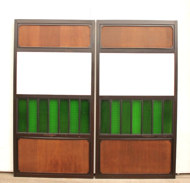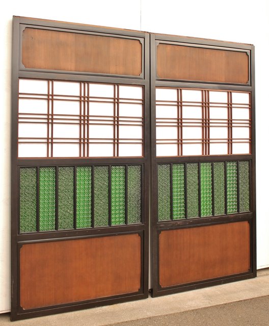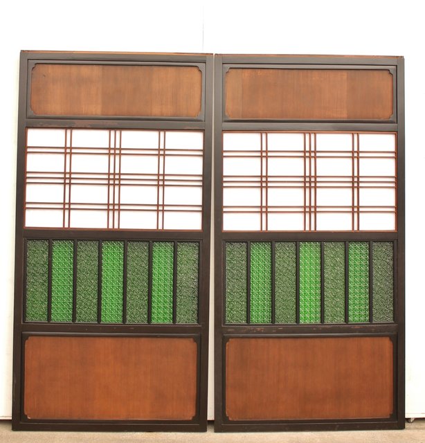 稀少緑色オニダイアガラスの障子戸 2枚1組 GD1042Y