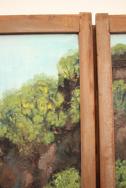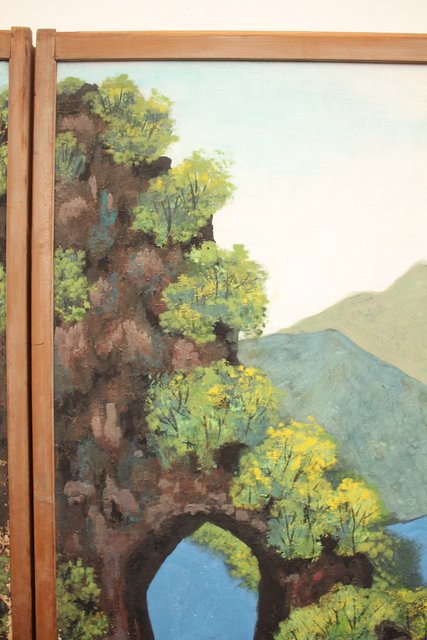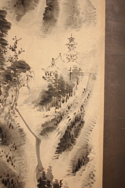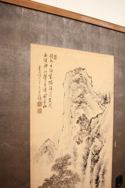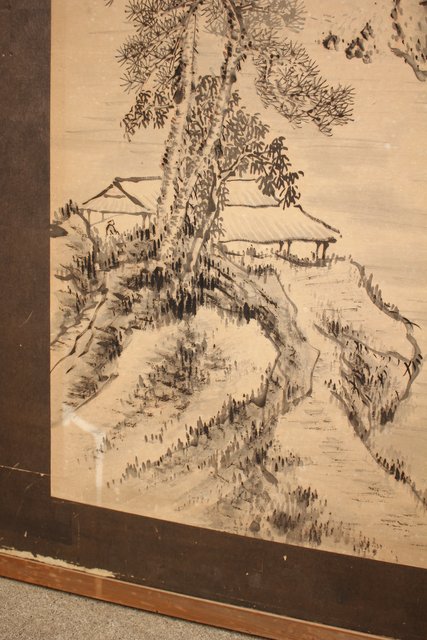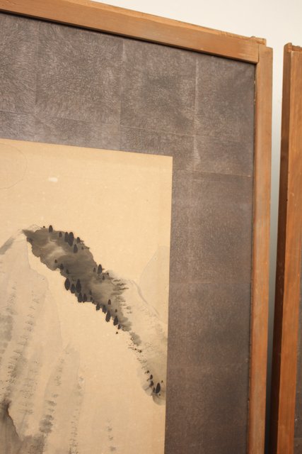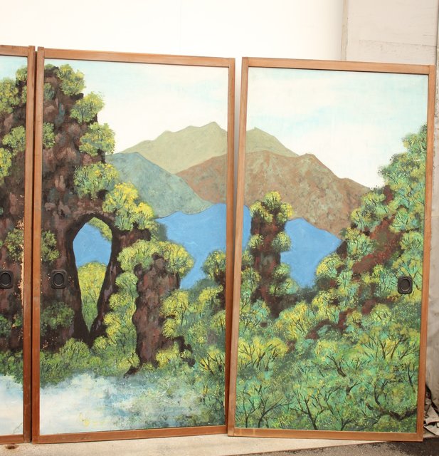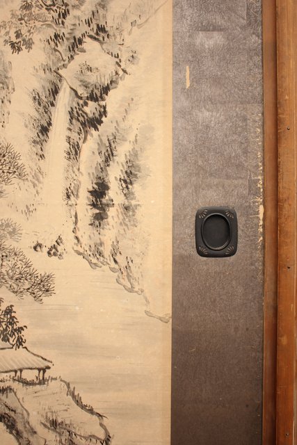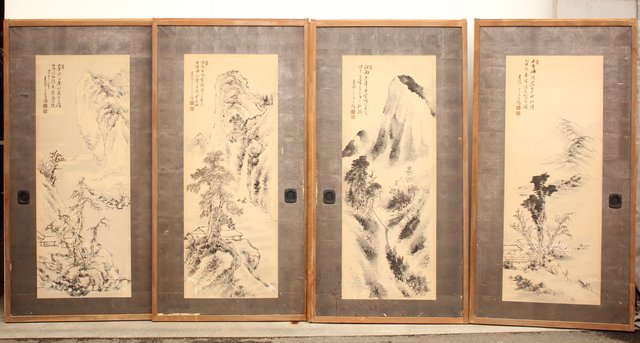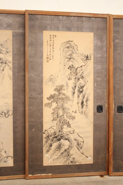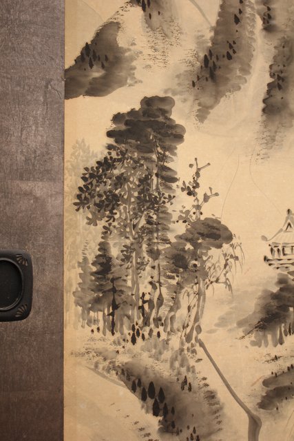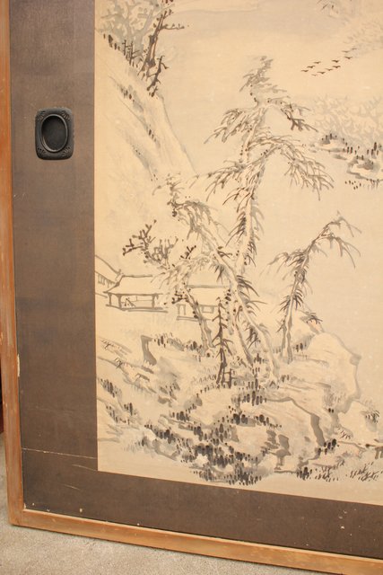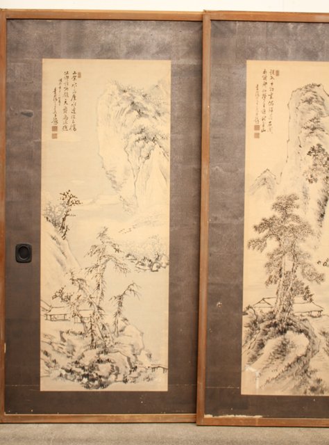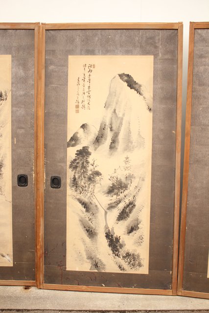 襖絵と毛利桑陰 山水画 両面襖戸 4枚1組 F202