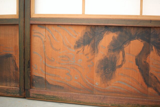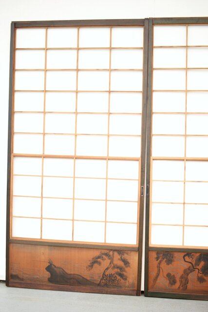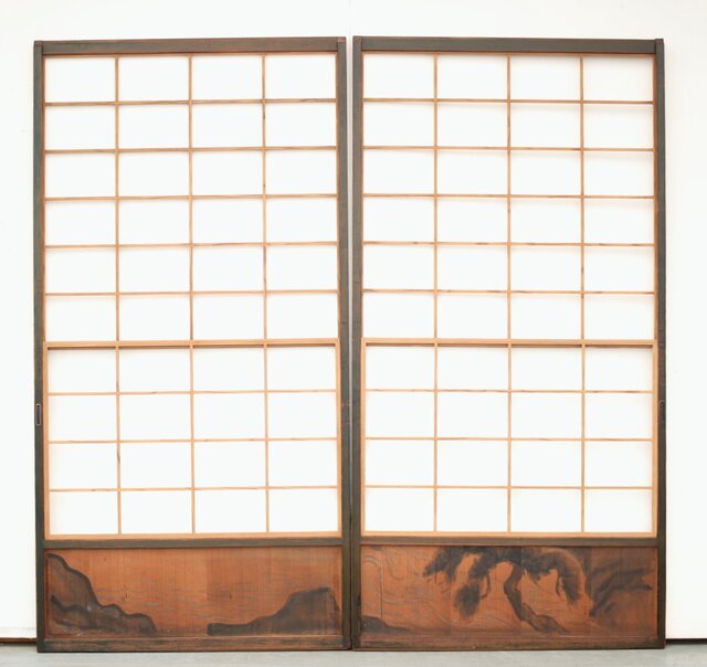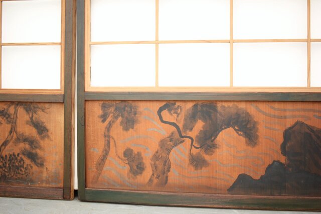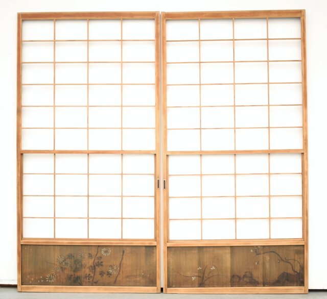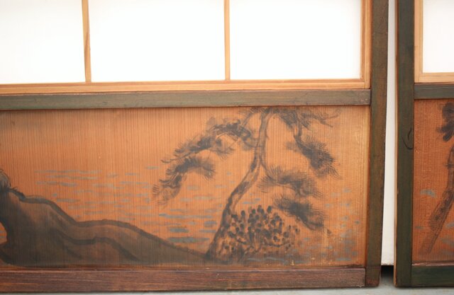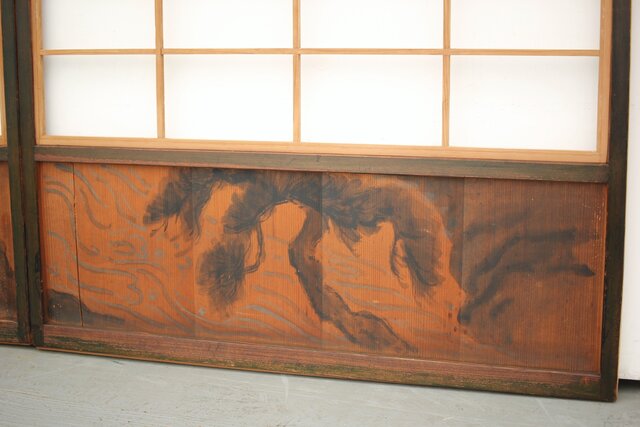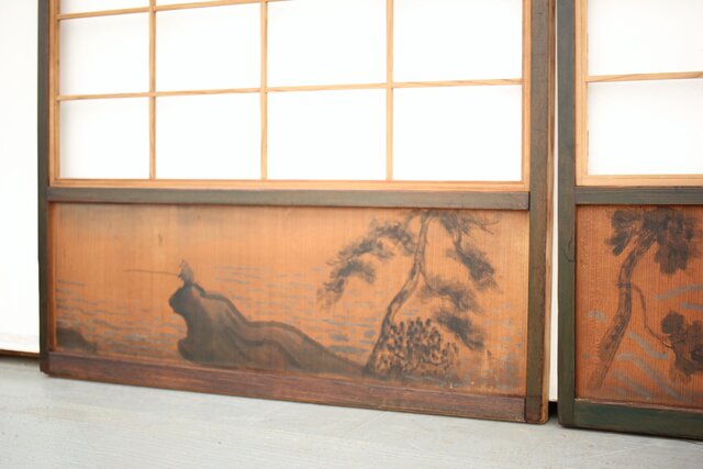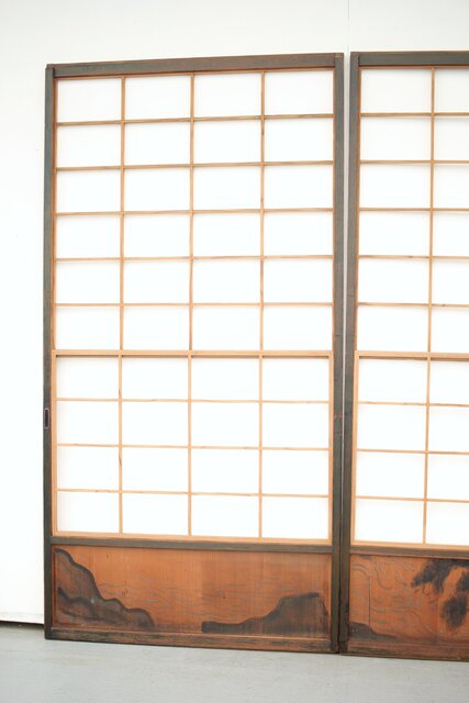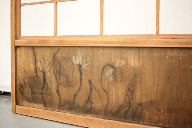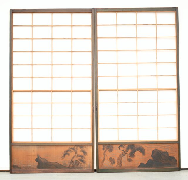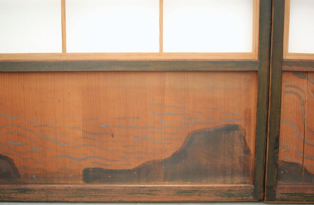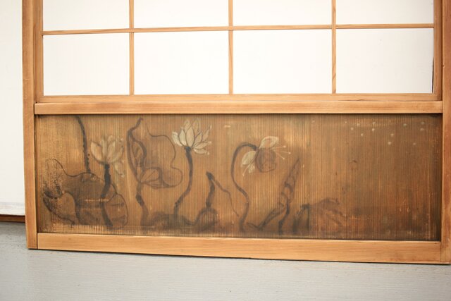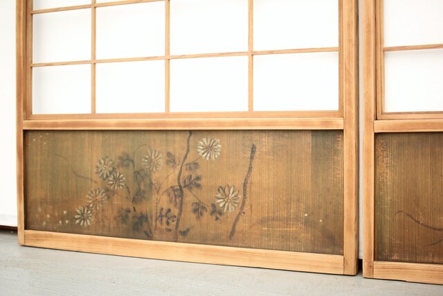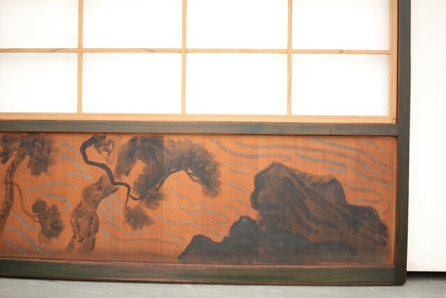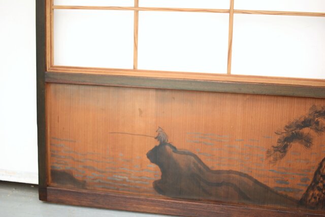 腰板に絵付けのある遊びのある障子戸