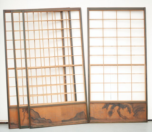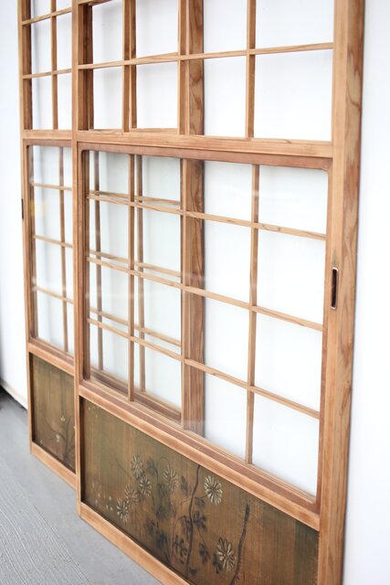 腰板絵 雪見障子戸M 4枚1組 F235 古建具の雪見は 開閉に多少難がある場合もあります