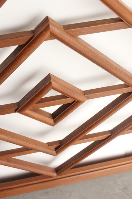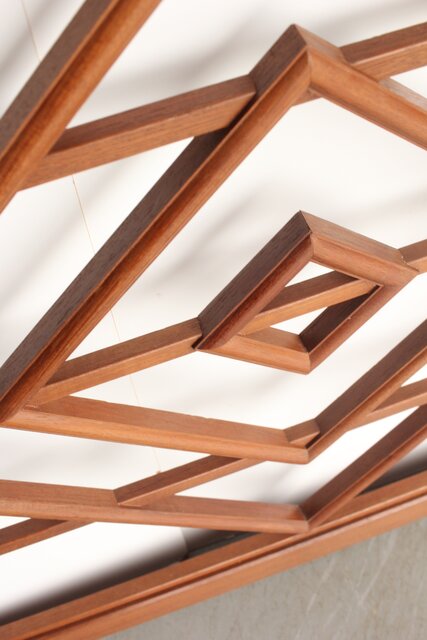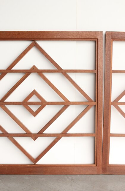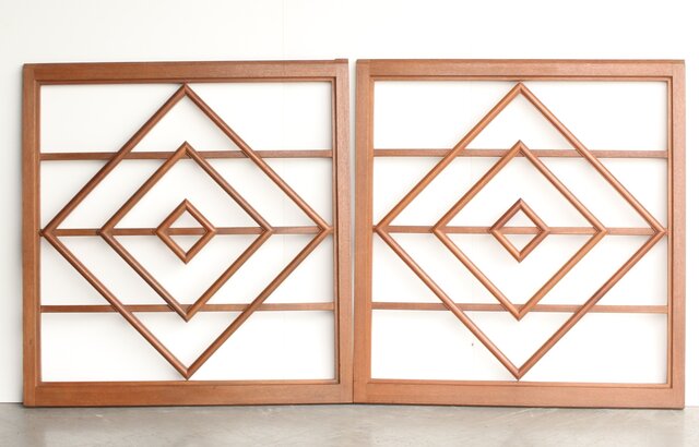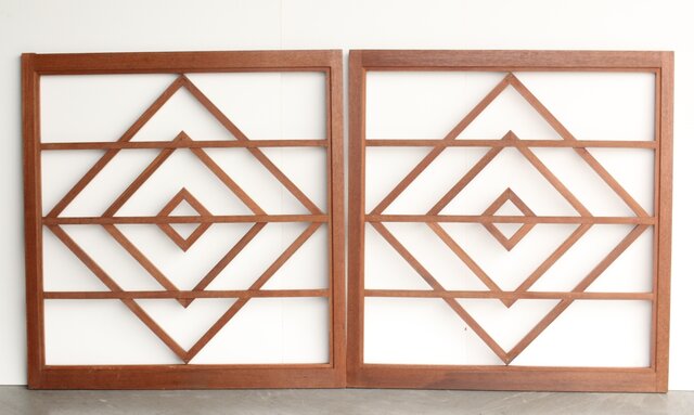 障子用チーク材幾何学紋建具 2枚1組 F244