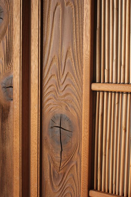 框は楢 節のある材で装飾し 地をうずくりにしてあります