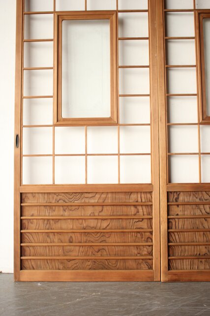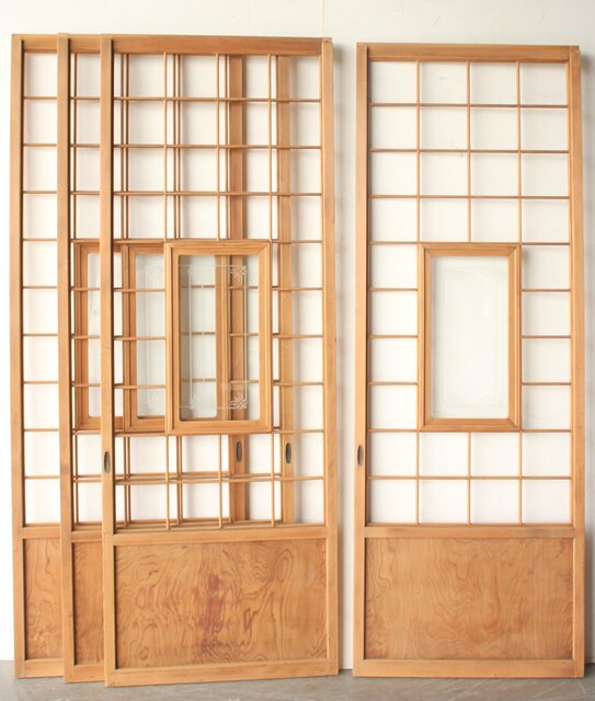 細身 ガラス障子戸 4枚1組 F305 AB ウラ 障子を貼る面 腰板の表情良し
