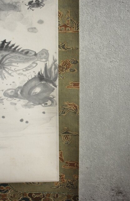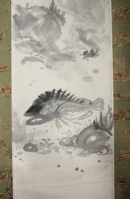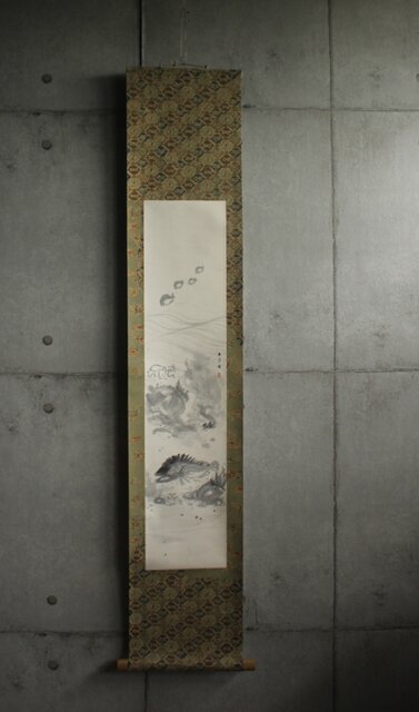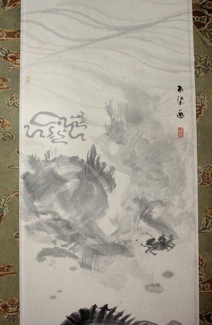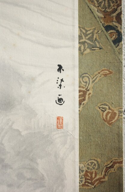 不染鉄 海の図 更紗染軸装 紙本掛軸 Z878