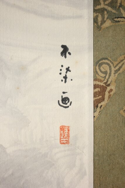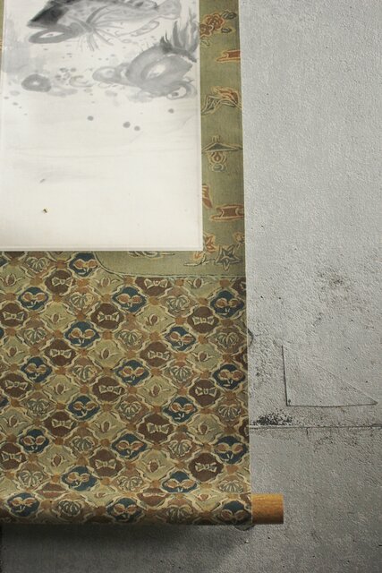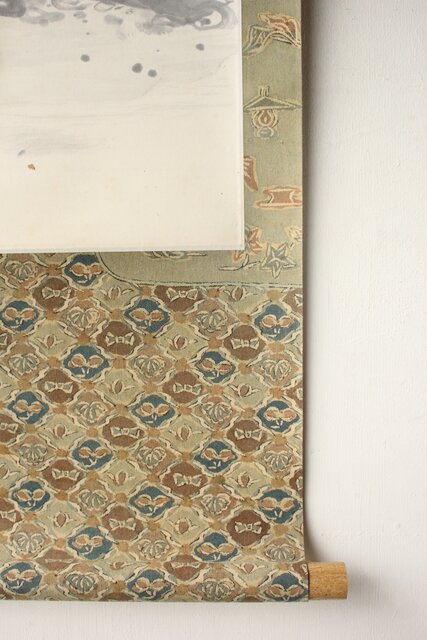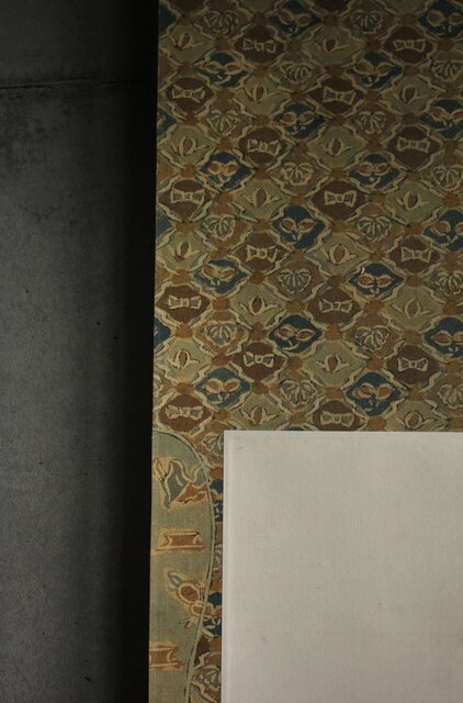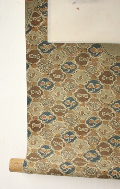 材質 紙本 軸装が更紗染め 軸先:竹