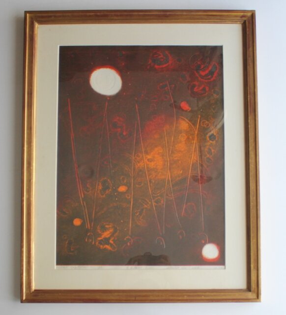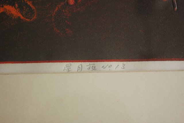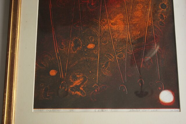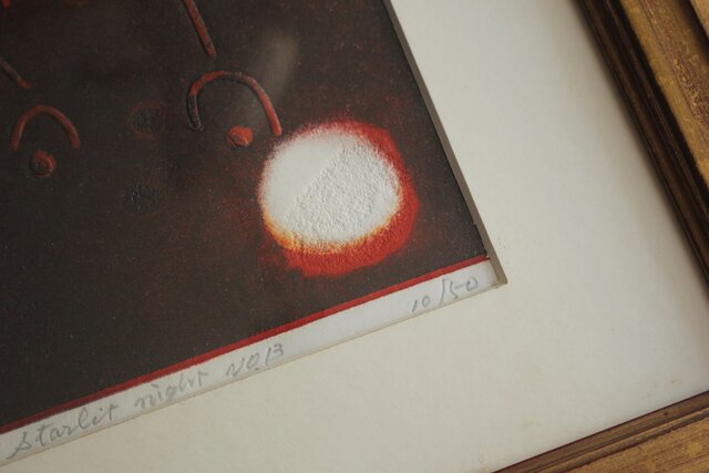 萩原英雄【星月夜 No13】版画 額装 Z882