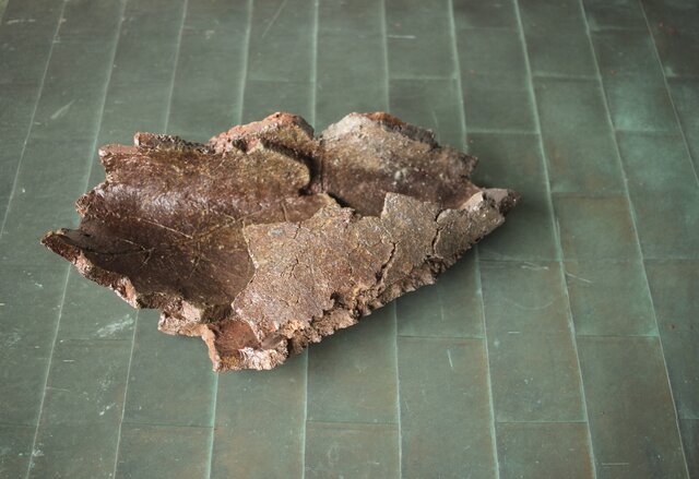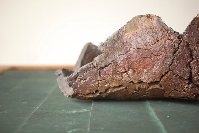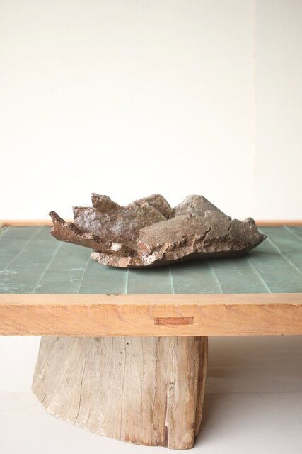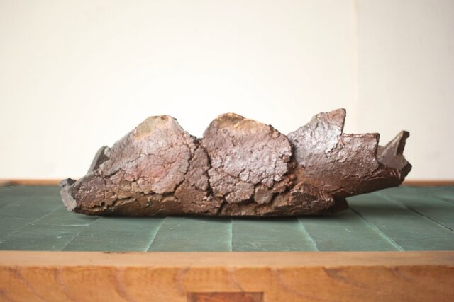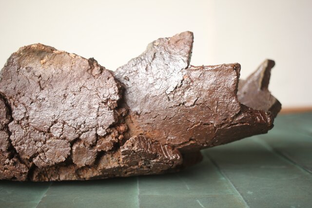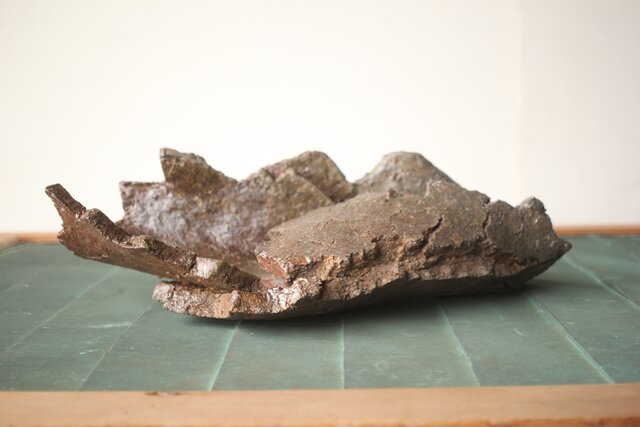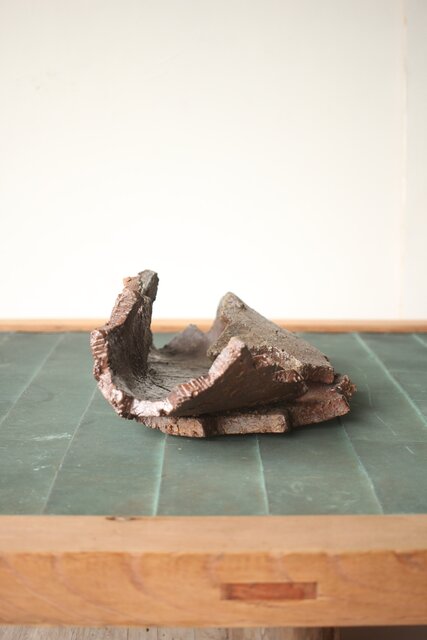 土を一気に折り曲げ 葉の形に切り落とした 魯山人を思わせる作陶