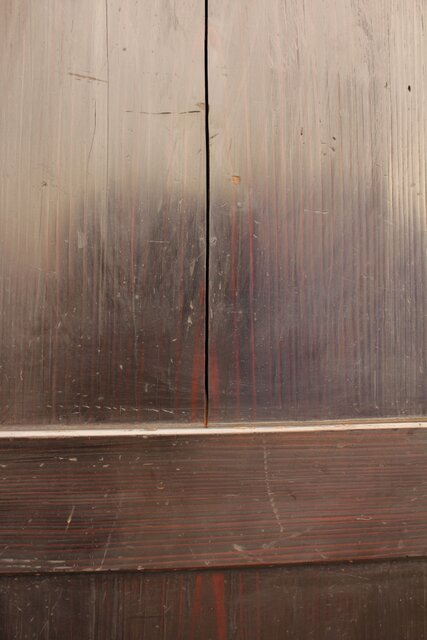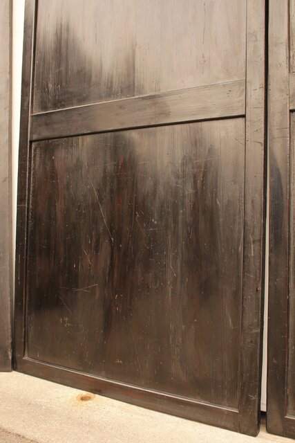 経年変化により黒光りした独特の雰囲気を醸し出す板戸