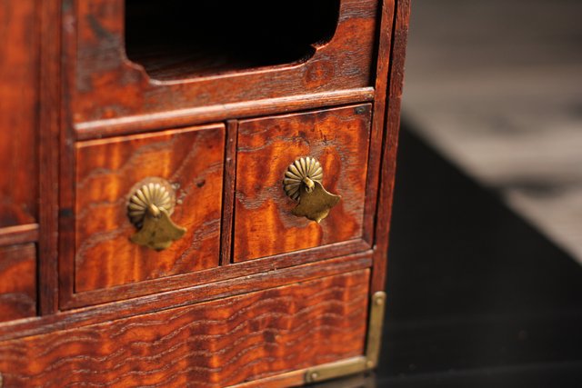丁番の扉の中 上部引き出しの引手が欠品しています