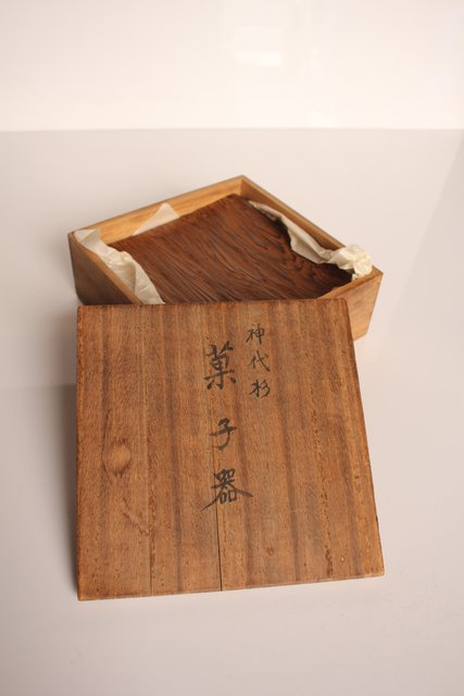神大杉をぎりぎりまで薄く削り 上品な菓子皿としました
