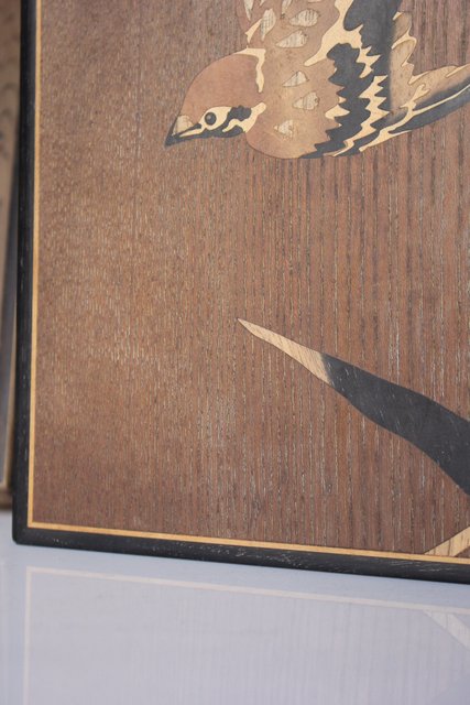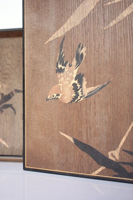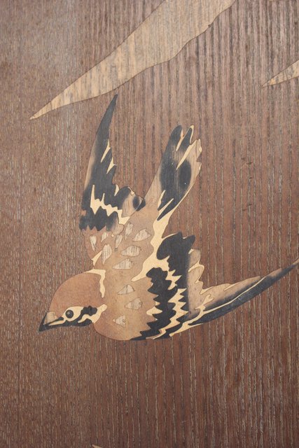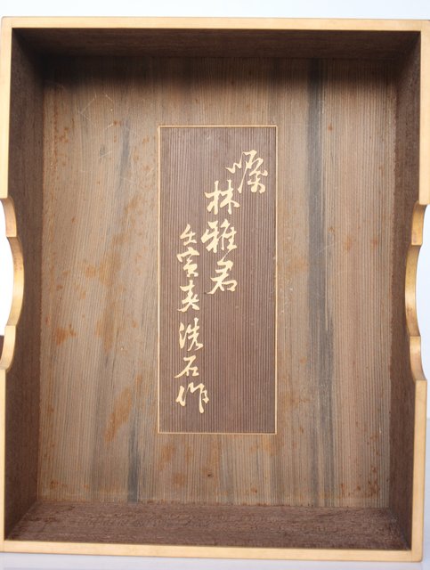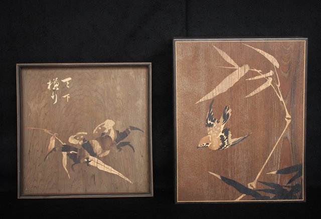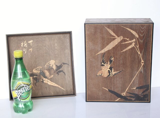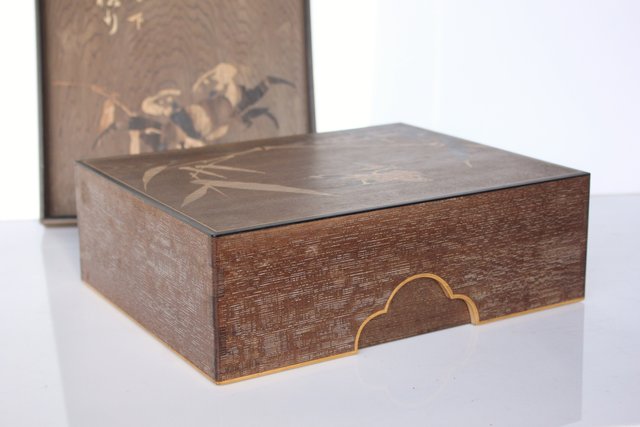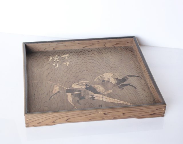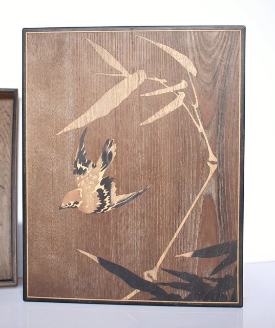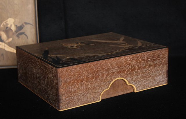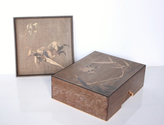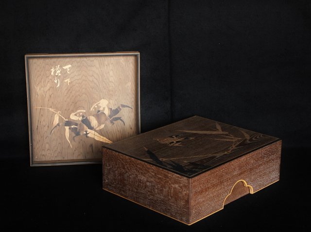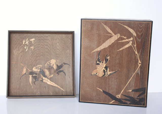 箱根細工創始者 白川洗石/鶴之助 木象嵌文箱/盆 X058