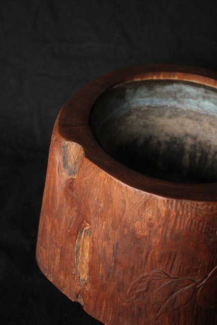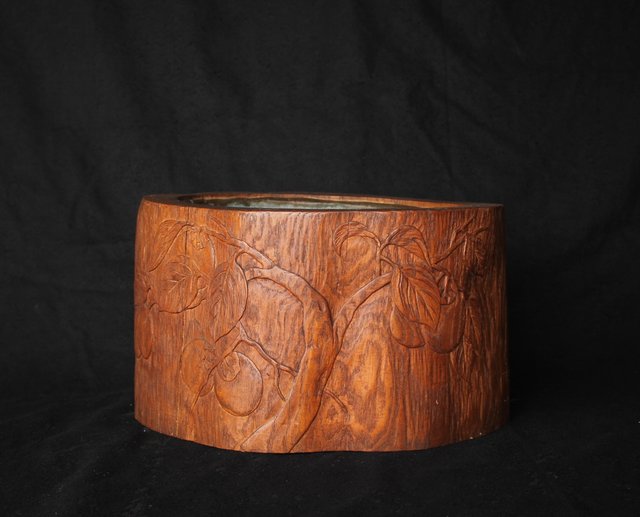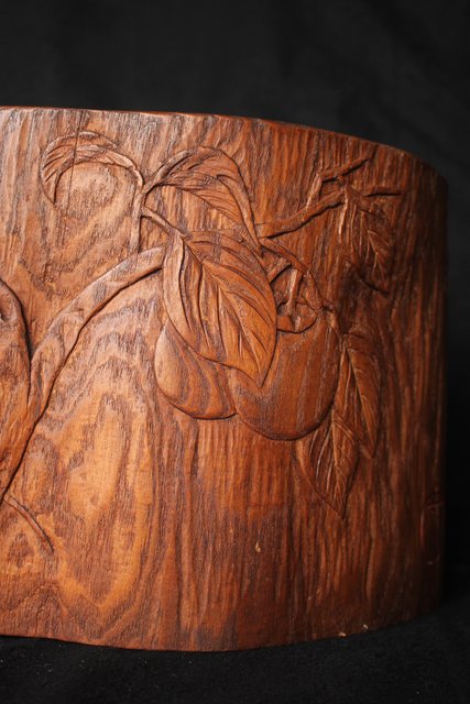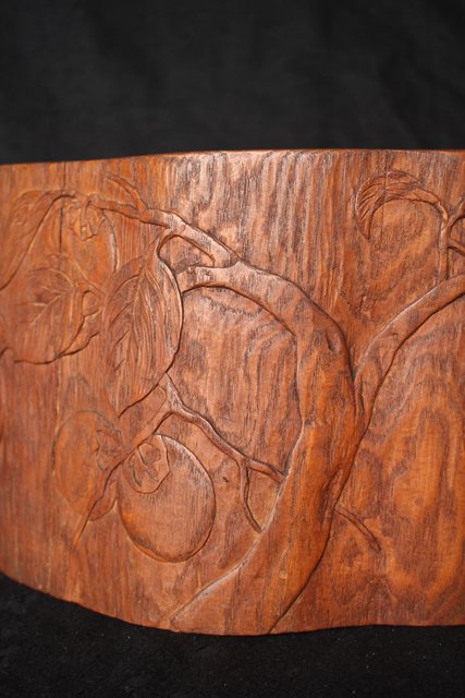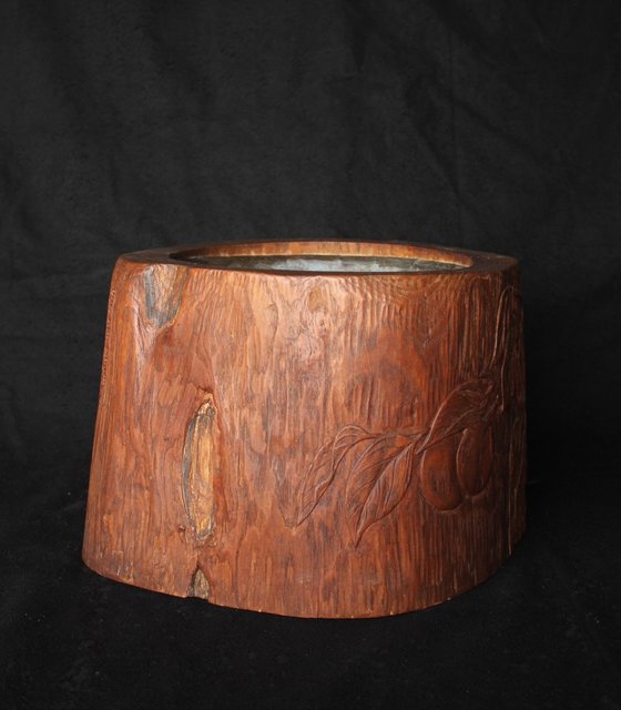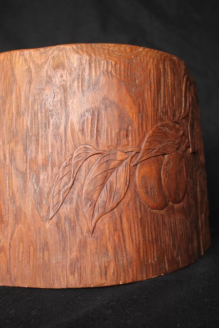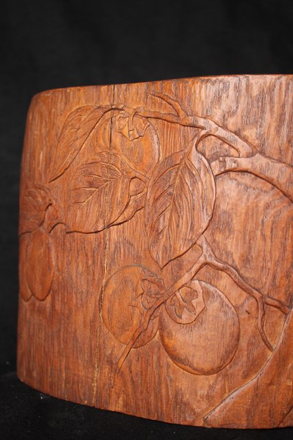 柿が浮き彫りしてある かわいらしい刳り貫き火鉢