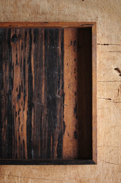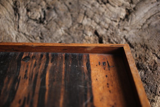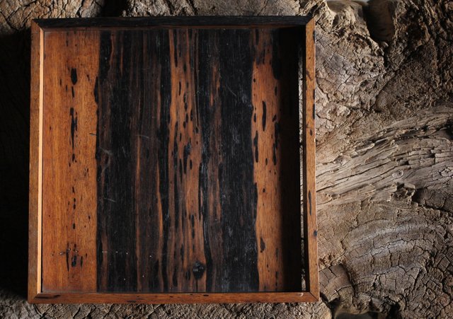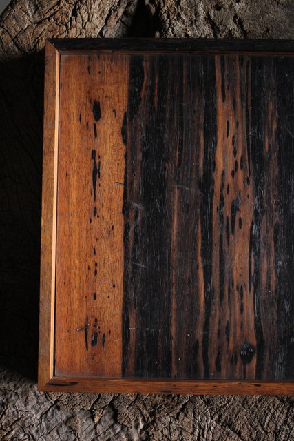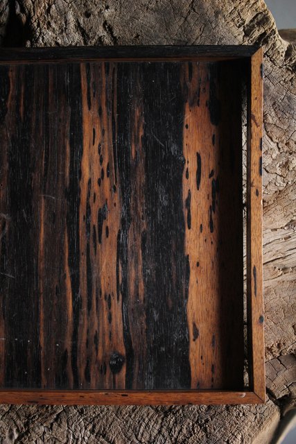水墨観瀑図如し 黒柿香盆/煎茶盆 X238