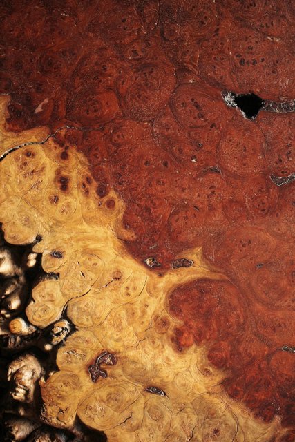 赤と白のコントラストがくっきりとして美しい杢