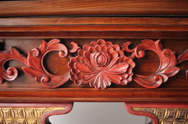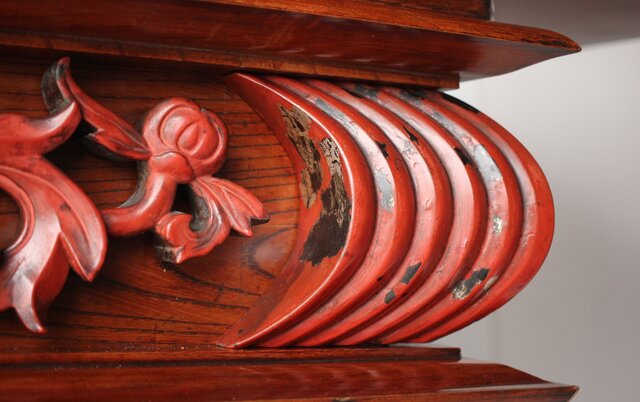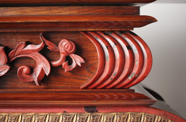 近代の前机は金色に輝く真鍮金具で装飾されているものを目にしたことがあると思います