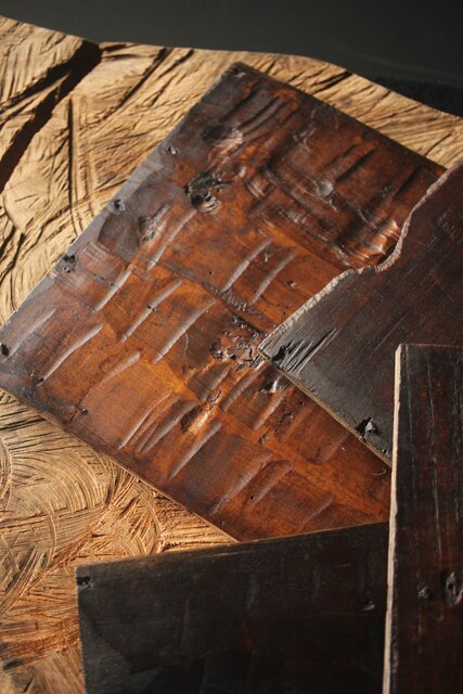 手斧で作成した荒々しい板