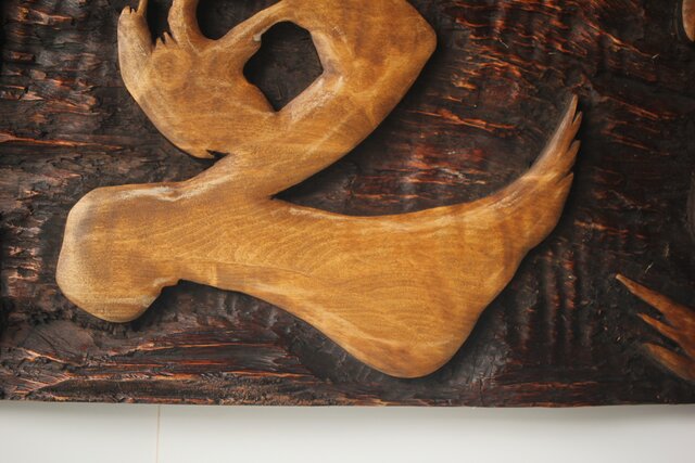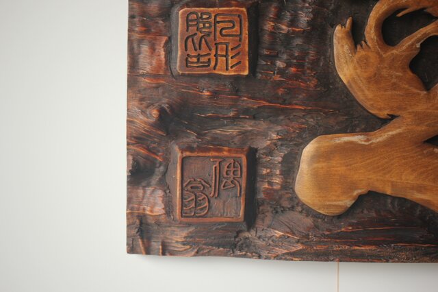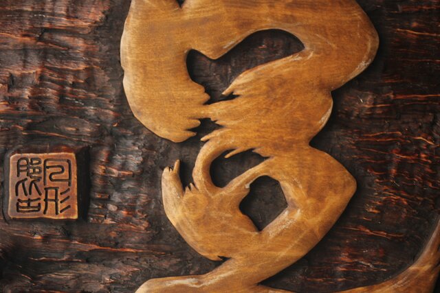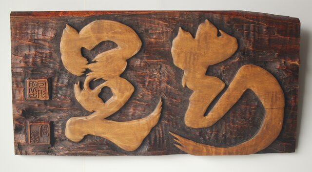 木彫で「知足」