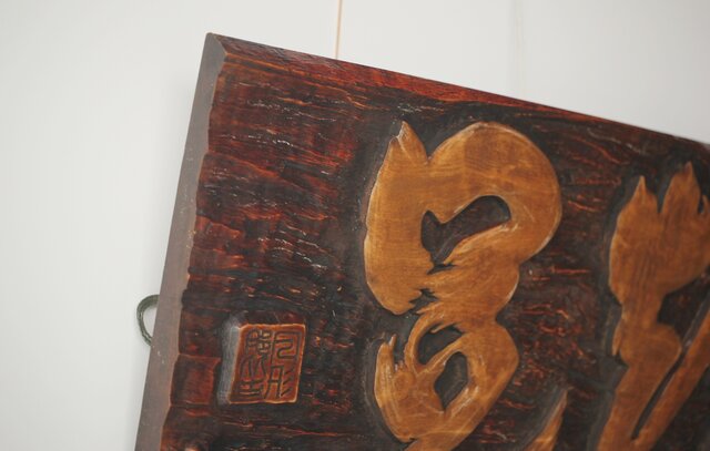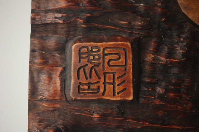 月形那比古 木彫横額 書刻【知足】 Z279