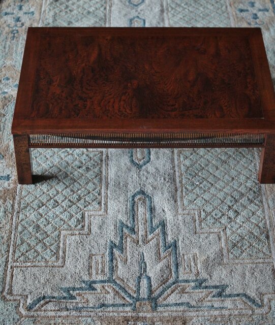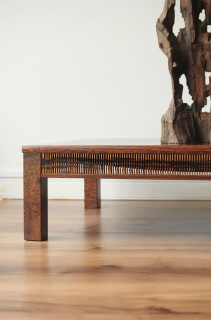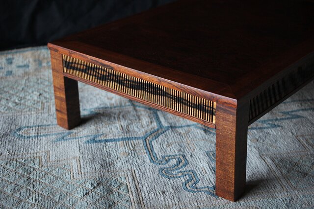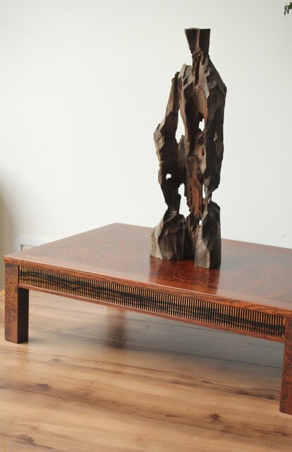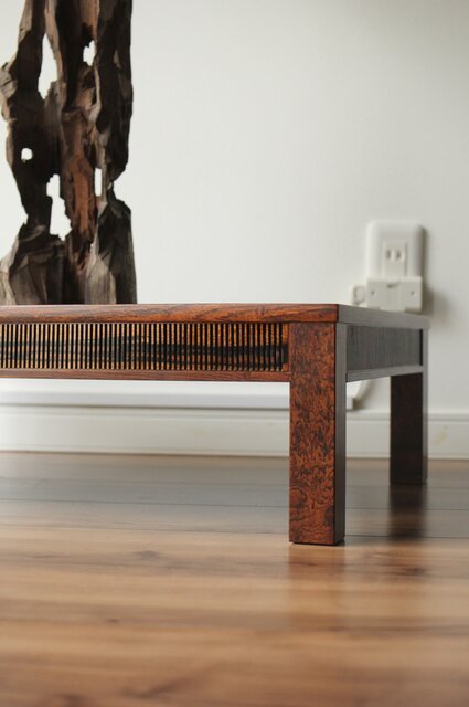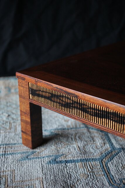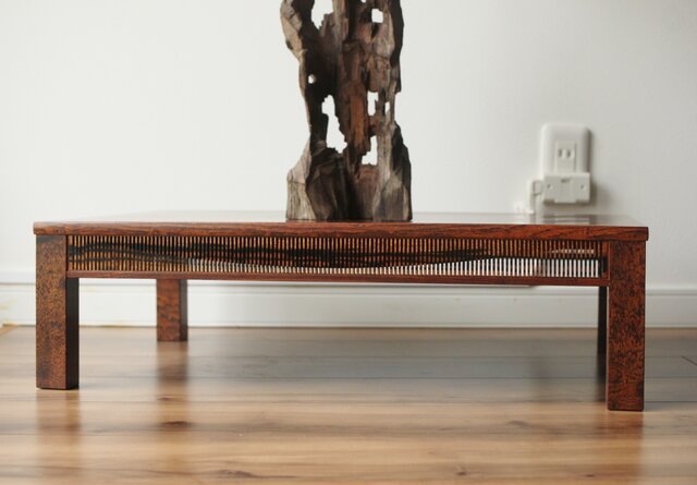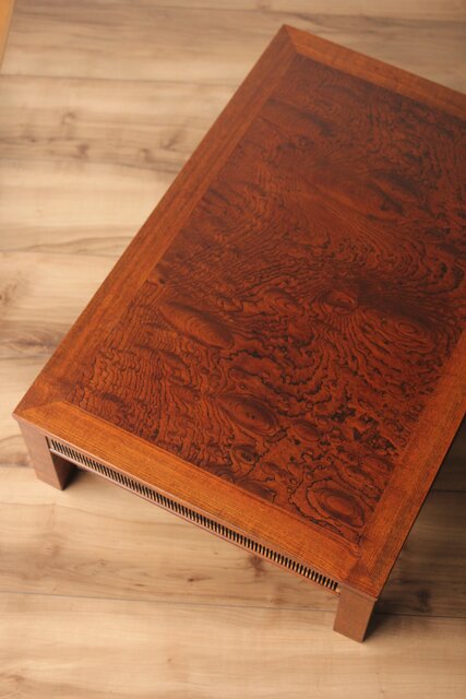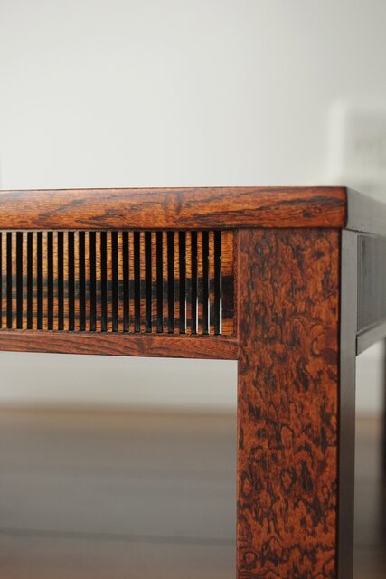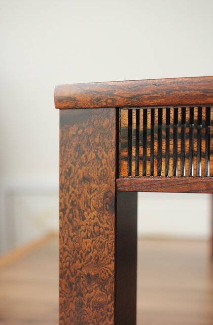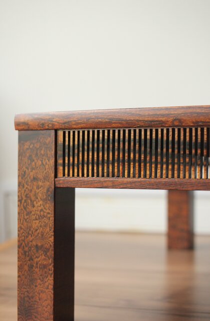 神代欅上玉杢と黒柿の筬装飾 指物卓 X362