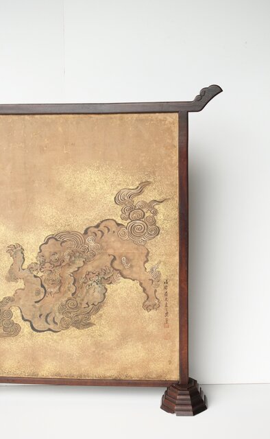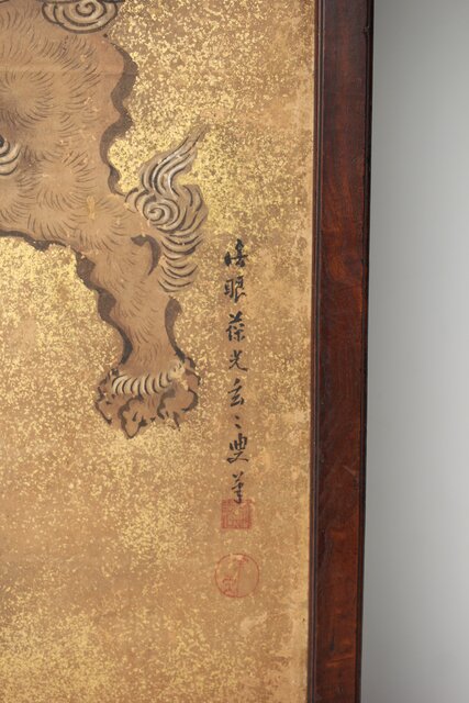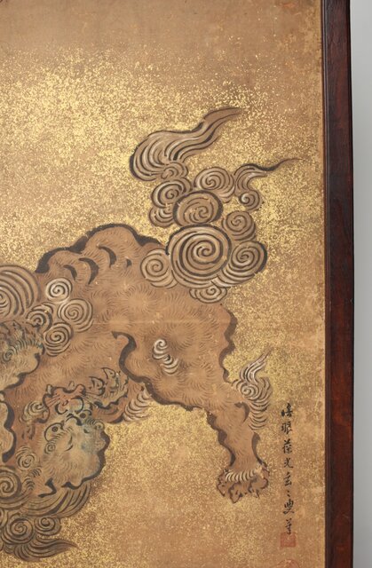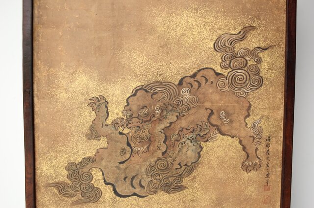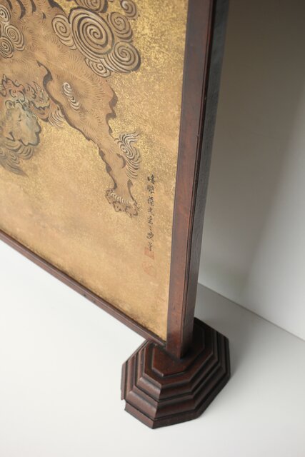 狩野派 倣 吉村周山/田島泰寛 合作 衝立表装 Z436