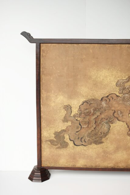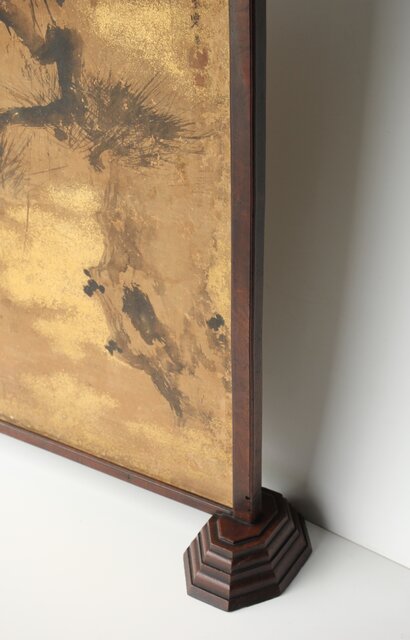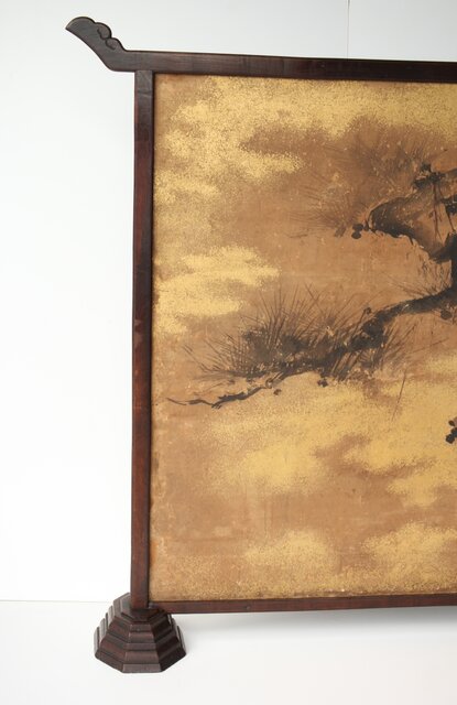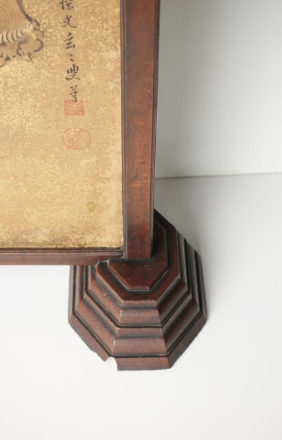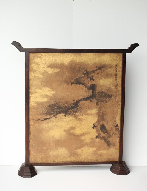 堅木の非常に仕立ての良い 衝立に表装