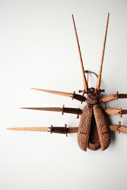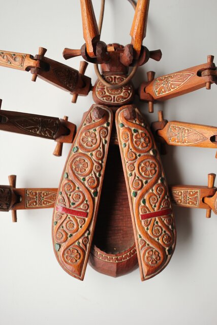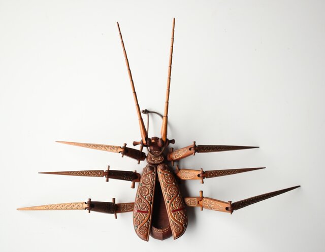 アイヌ工芸 自在木彫 天牛 X429