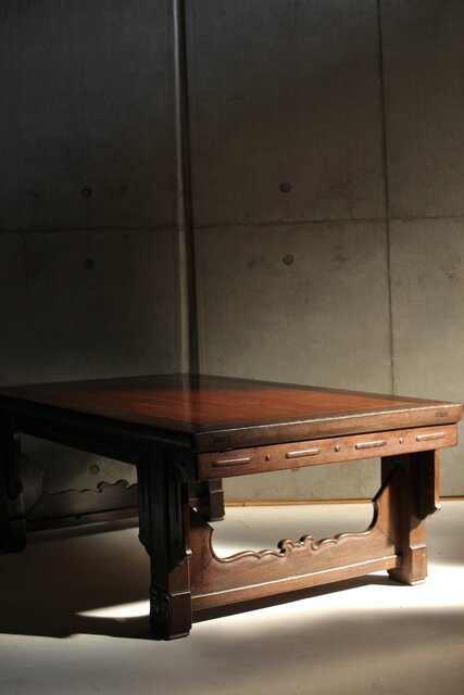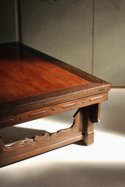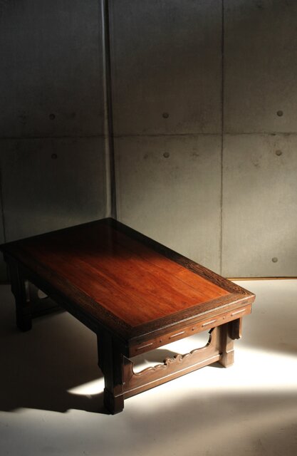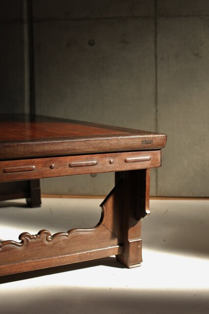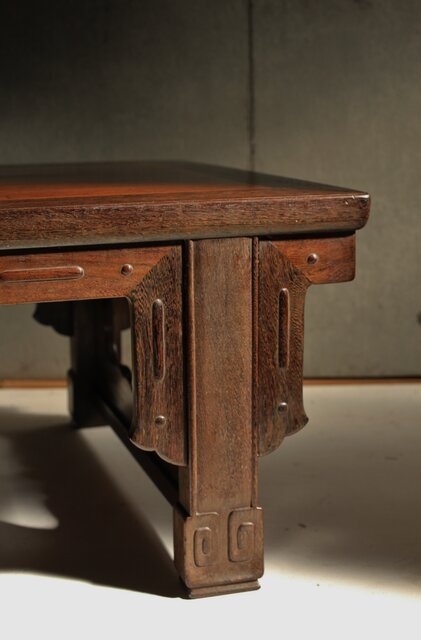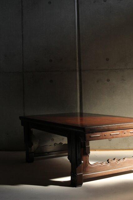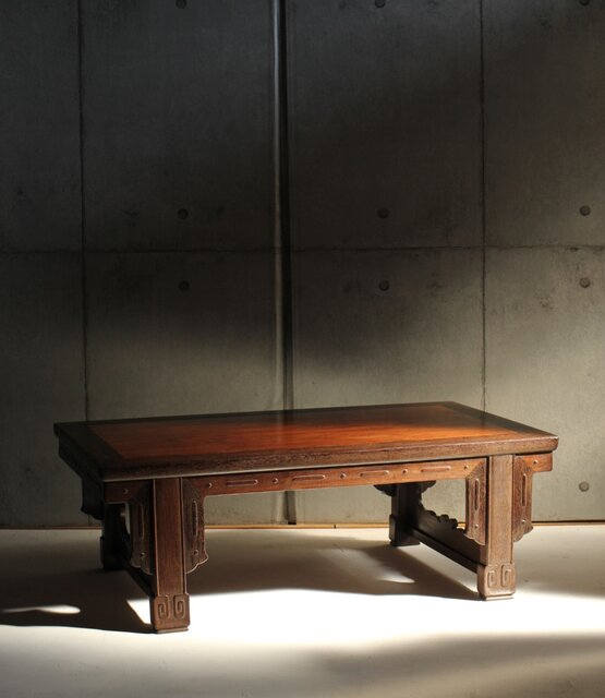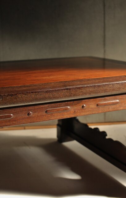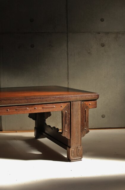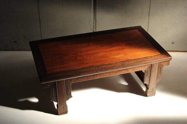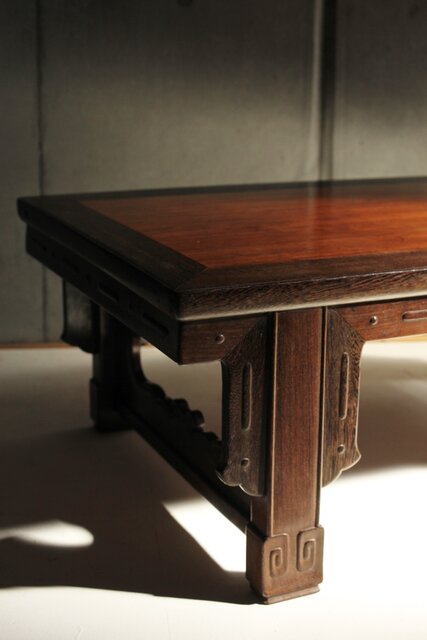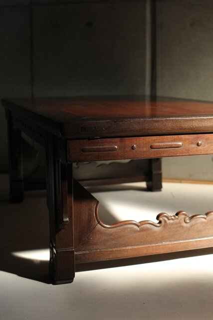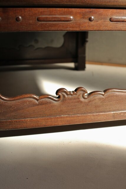 鉄刀木のような堅木を丁寧に彫り上げた卓