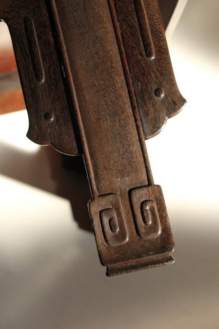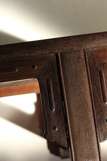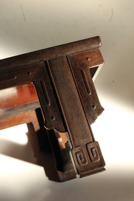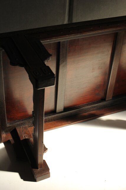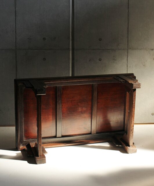 鉄刀木 指物文机 盆栽卓 X575 側面装飾の上部が欠損