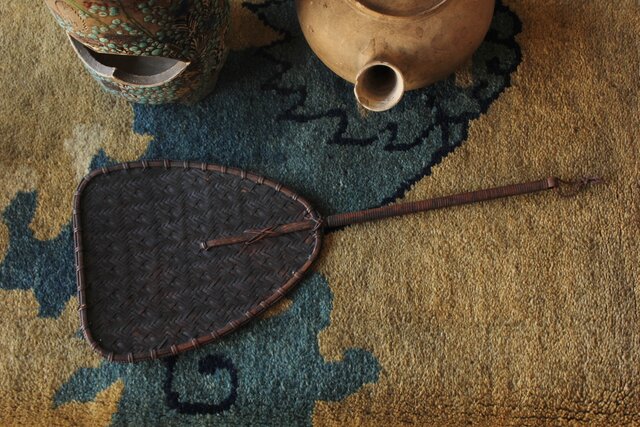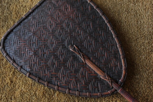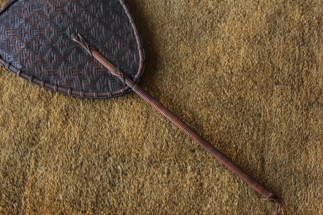 炉扇は竹と籐で 味があります