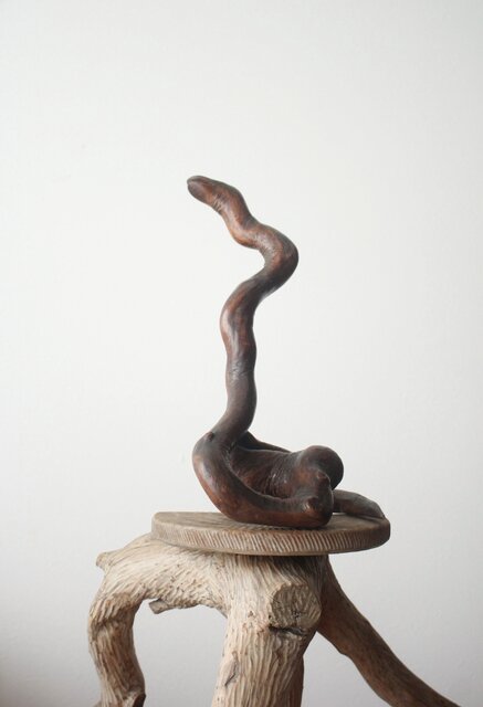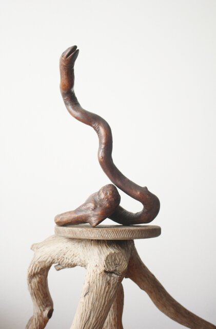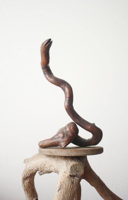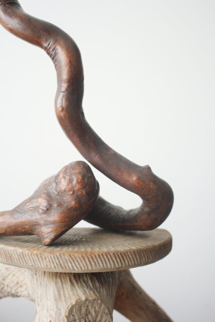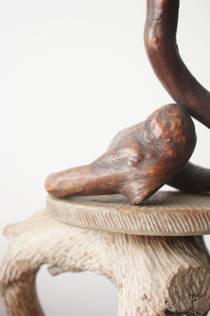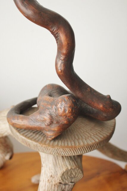 自然木を利用して作られた蛇の木彫