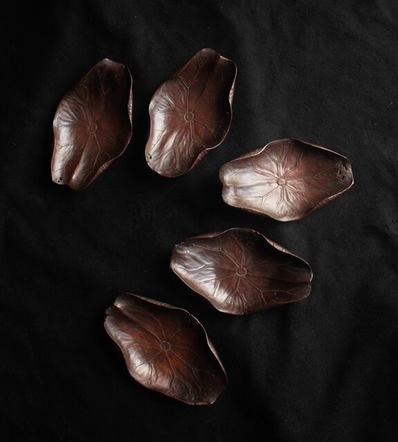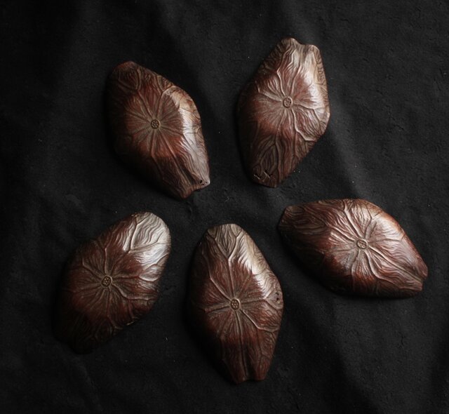 蓮型木彫茶托 5客1組 X621