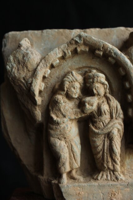 ガンダーラ美術 緑岩 仏伝 浮彫レリーフ彫刻 X640