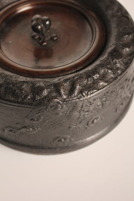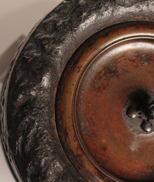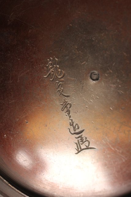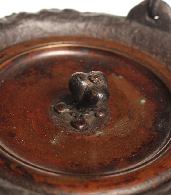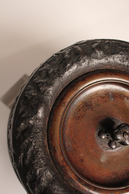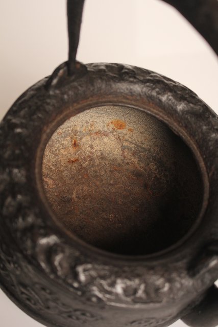 龍文堂安之介造 蓋裏花押入 岩肌道安形鉄瓶 H451