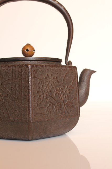 吉祥紋を鋳造した 品の良い鉄瓶です