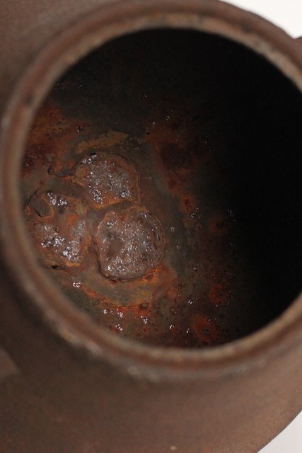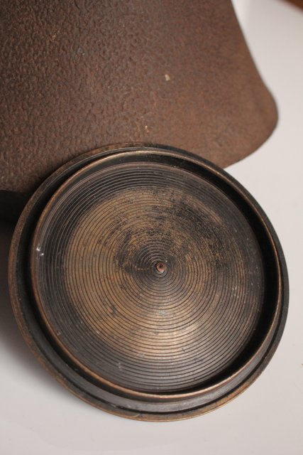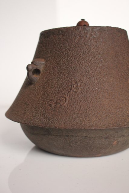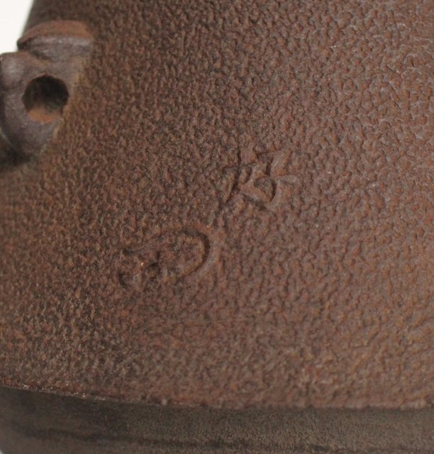 惺斎の花押が鋳抜かれた茶釜