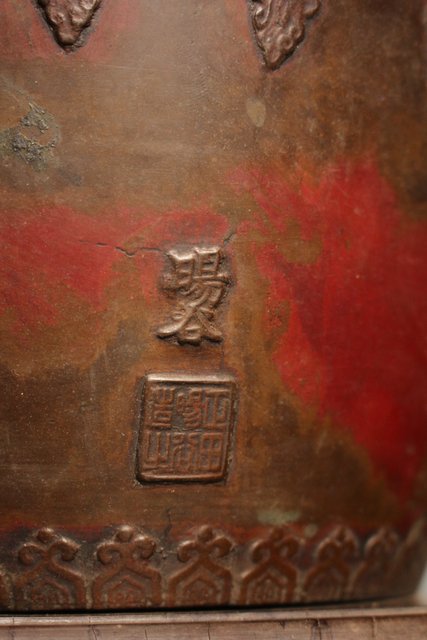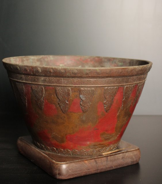 美しい斑柴銅の瓶掛/火鉢です
