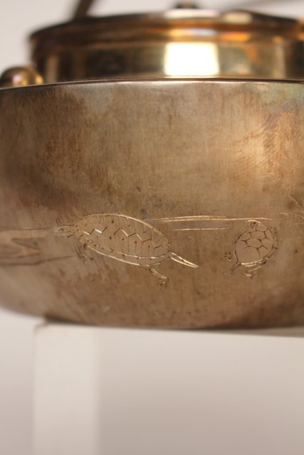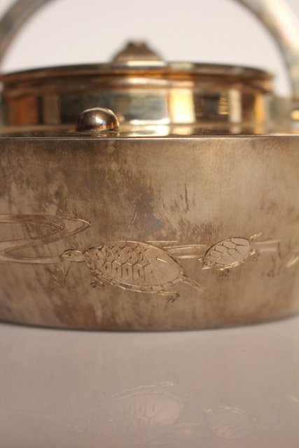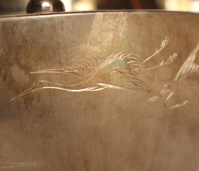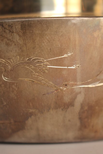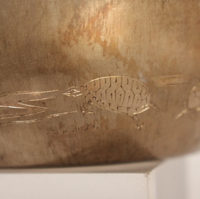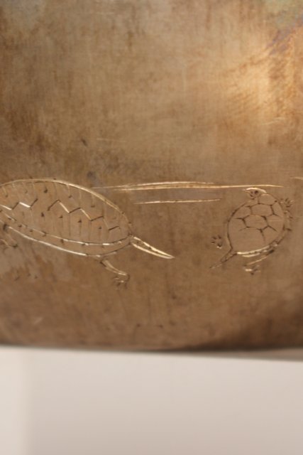 片切彫で鶴亀が表現されています