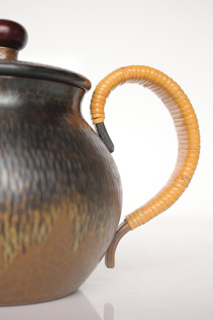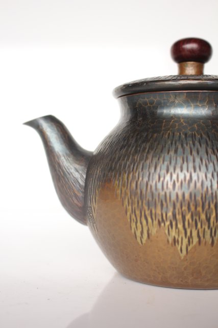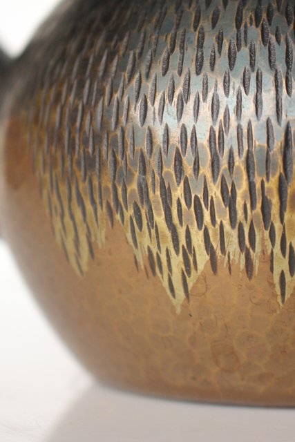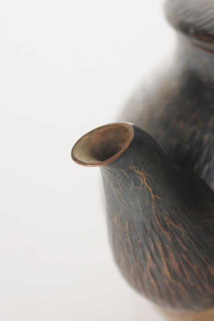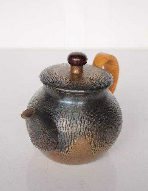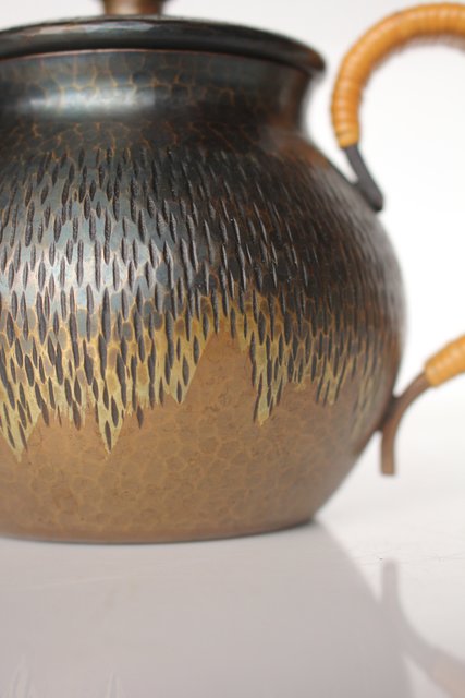 玉川堂 鎚起銅製 壷形ござ目藤編横手急須 M043