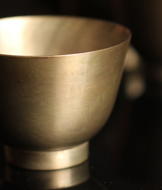 形状的に煎茶碗にぴったりの美しい金属の碗