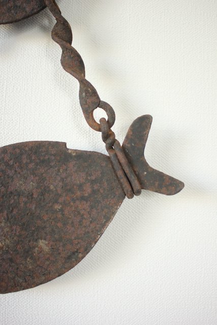 魚 と 木の葉の自在鉤