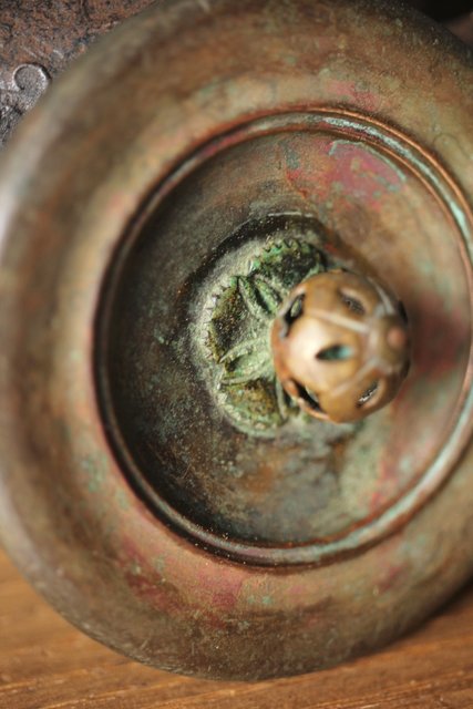 鳳凰などを鋳抜き いびつな形に鋳造されている小ぶりサイズ