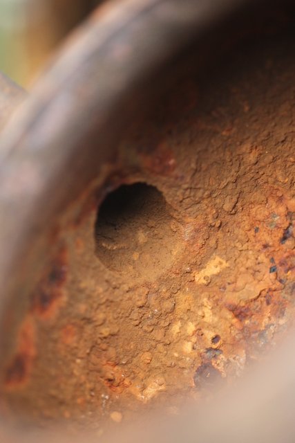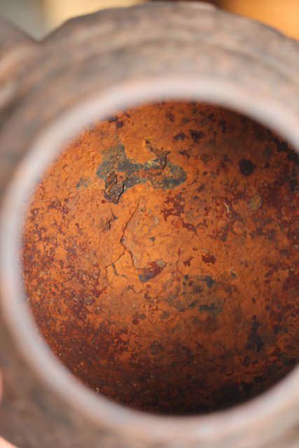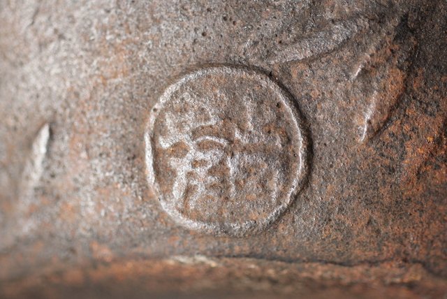 注ぎ口下に丸印 中は錆が目立ちます