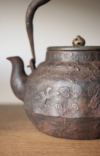 龍文堂 上田照房造 鳳凰図 小振鉄瓶 M293