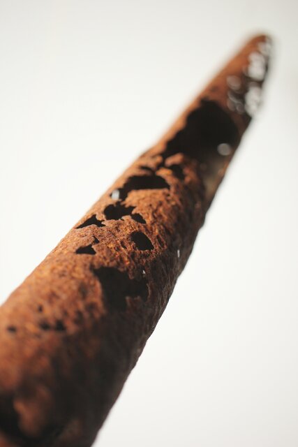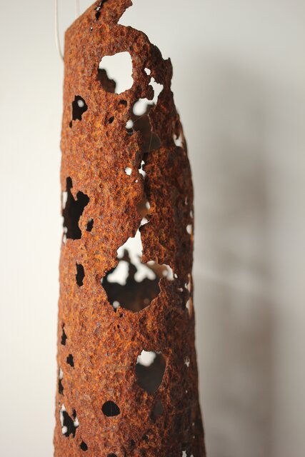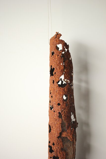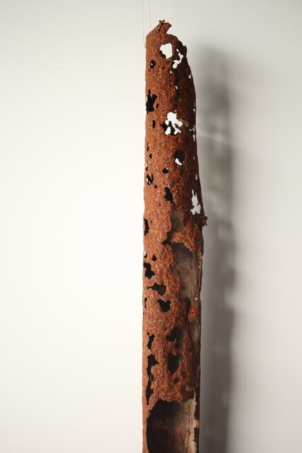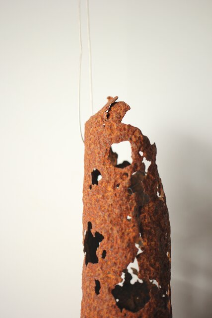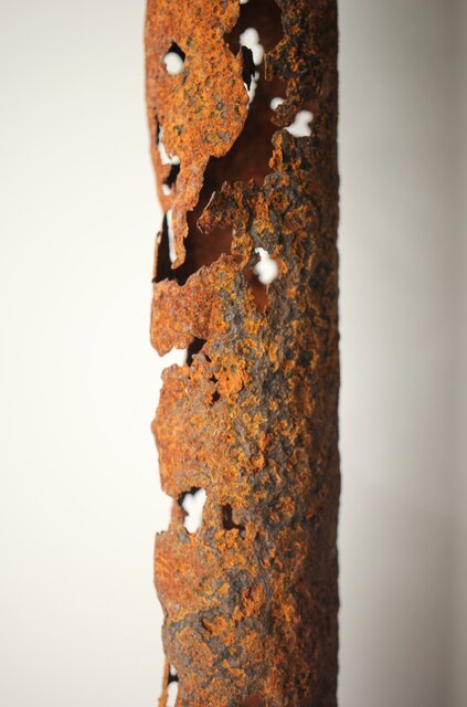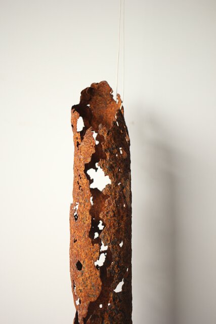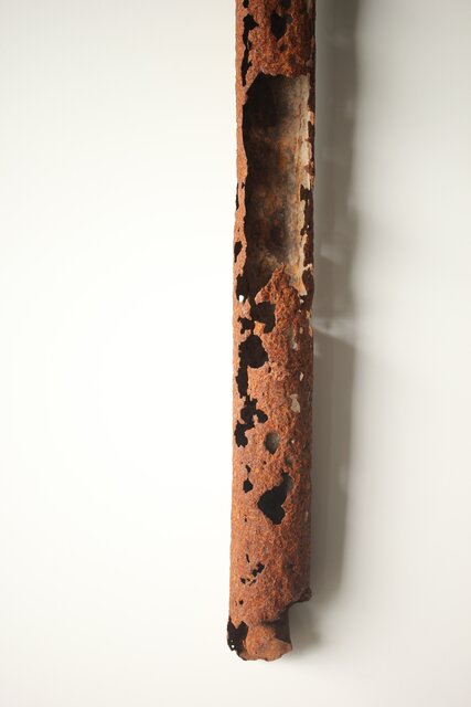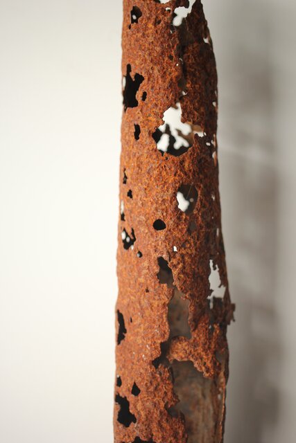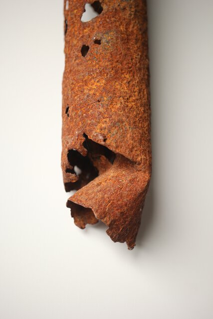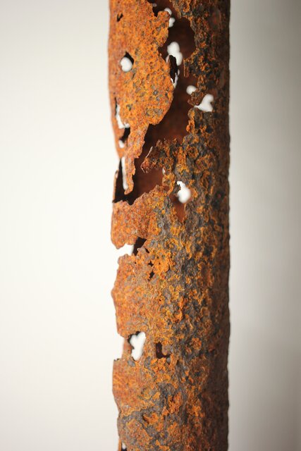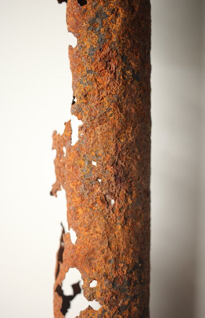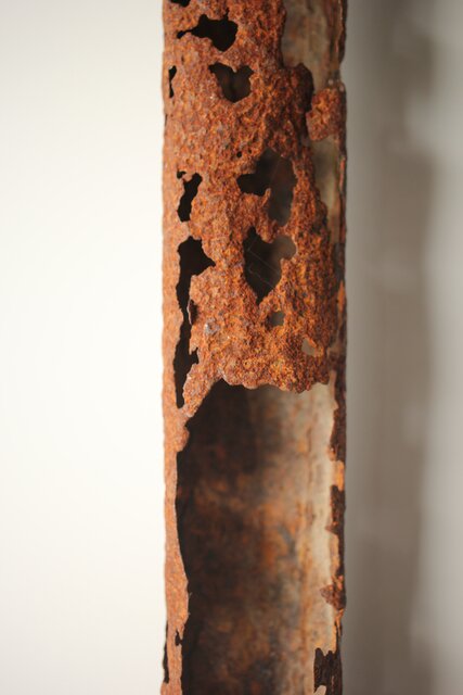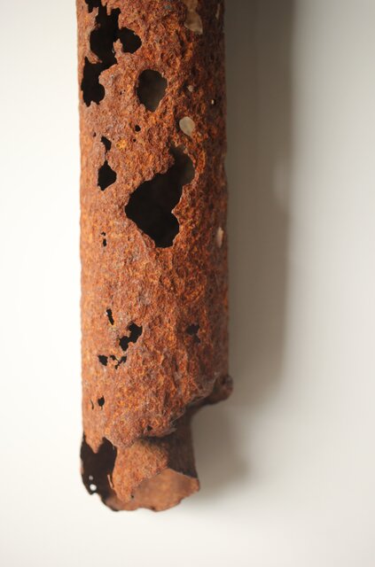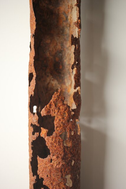本体は固く しっかりしていますが朽ちた鉄なので 弱くなったところがぽろぽろと落ちることがあります